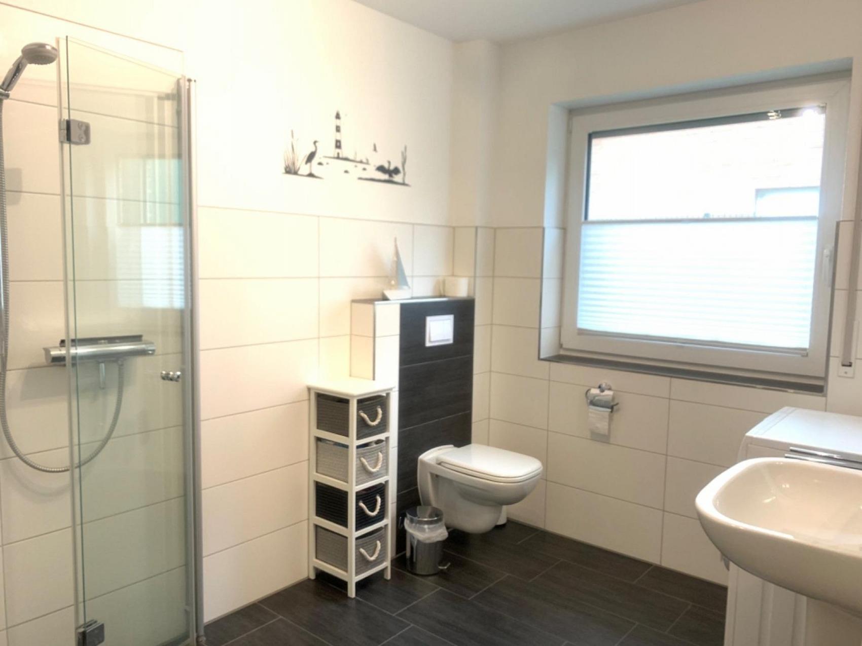 Erdgeschoßwohnung mit 60 qm² Wohnfläche.Genießen Sie Ihren Urlaub im Nordseebad Horumersiel in der Ferienwohnung Backbord .Die Ferienwohnung ist ausgelegt für 4 Personen.Ihnen steht ein Schlafzimmer mit Doppelbett(TV 32 Zoll Flachbild) und ein weiteres Schlafzimmer mit zwei Einzelbetten und bei Bedarfeinem Babyreisebett zur Verfügung.Das helle Tageslicht Badezimmer mit Spiegel, WC, Handtuchtrockner und großer, ebenerdiger Regendusche mit Glaswand ist komplett mit einer Fußbodenheizung ausgestattet. Dazu steht eine Waschmaschine im Badezimmer bereit.In der voll ausgestatteten Küche mit Spülmaschine, Mikrowelle, Ceranfeld, Backofen, Kühlschrank mit Gefrierfach, Kaffeemaschine, Toaster und Wasserkocher werden Sie nichts vermissen.Für die kleinen Gäste steht ein Hochstuhl bereit.Im gemütlich eingerichteten Wohnzimmer befindet sich ein ausziehbares Sofa mit Tisch und ein TV (40 Zoll Flachbildschirm) Im Wohnzimmer und Badezimmer befindet sich eine Fußbodenheizung.Alle Zimmer haben Aussenjalousien.In jedem Raum ist mindestens ein Fenster mit einem Fliegengitter ausgestattet.Zur Wohnung gehört ebenfalls eine Terrasse mit Gartenmöbel sowie ein fast 100 qm² großer Garten.Die Ferienwohnung liegt zentral. Einkaufsmöglichkeiten, Restaurants, Schwimmbad, Arzt etc sind im Ort und die Nordsee ist zu Fuß in ca. 5 Min. zu erreichen.