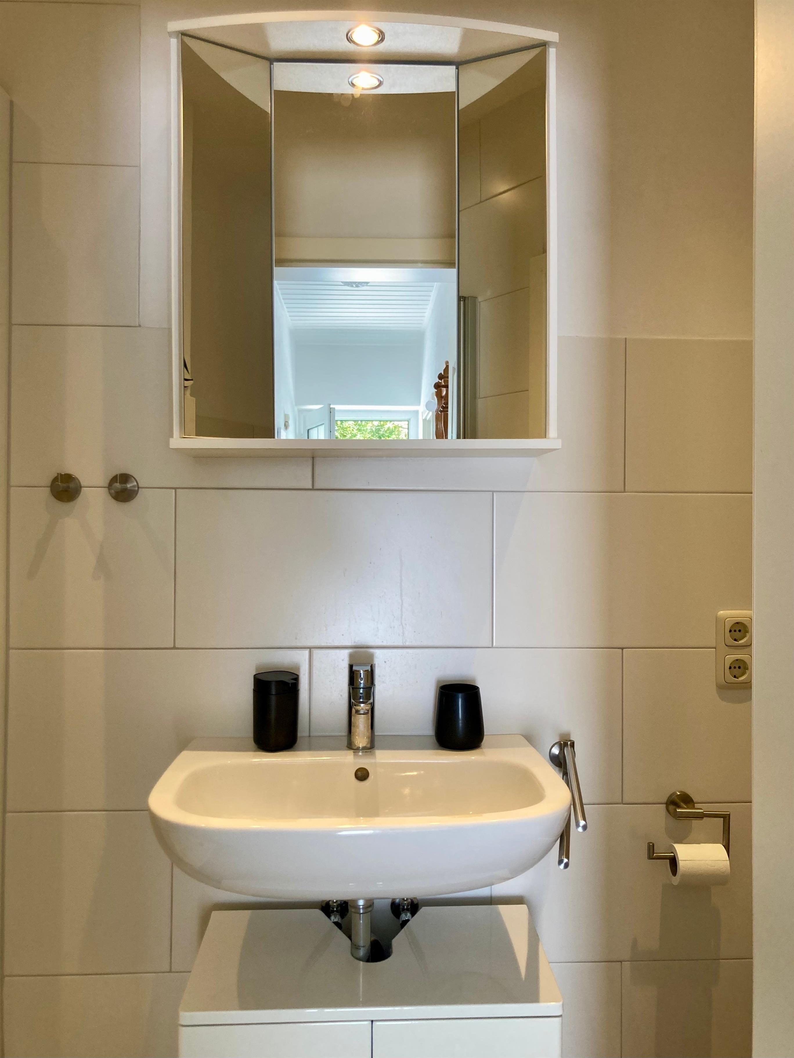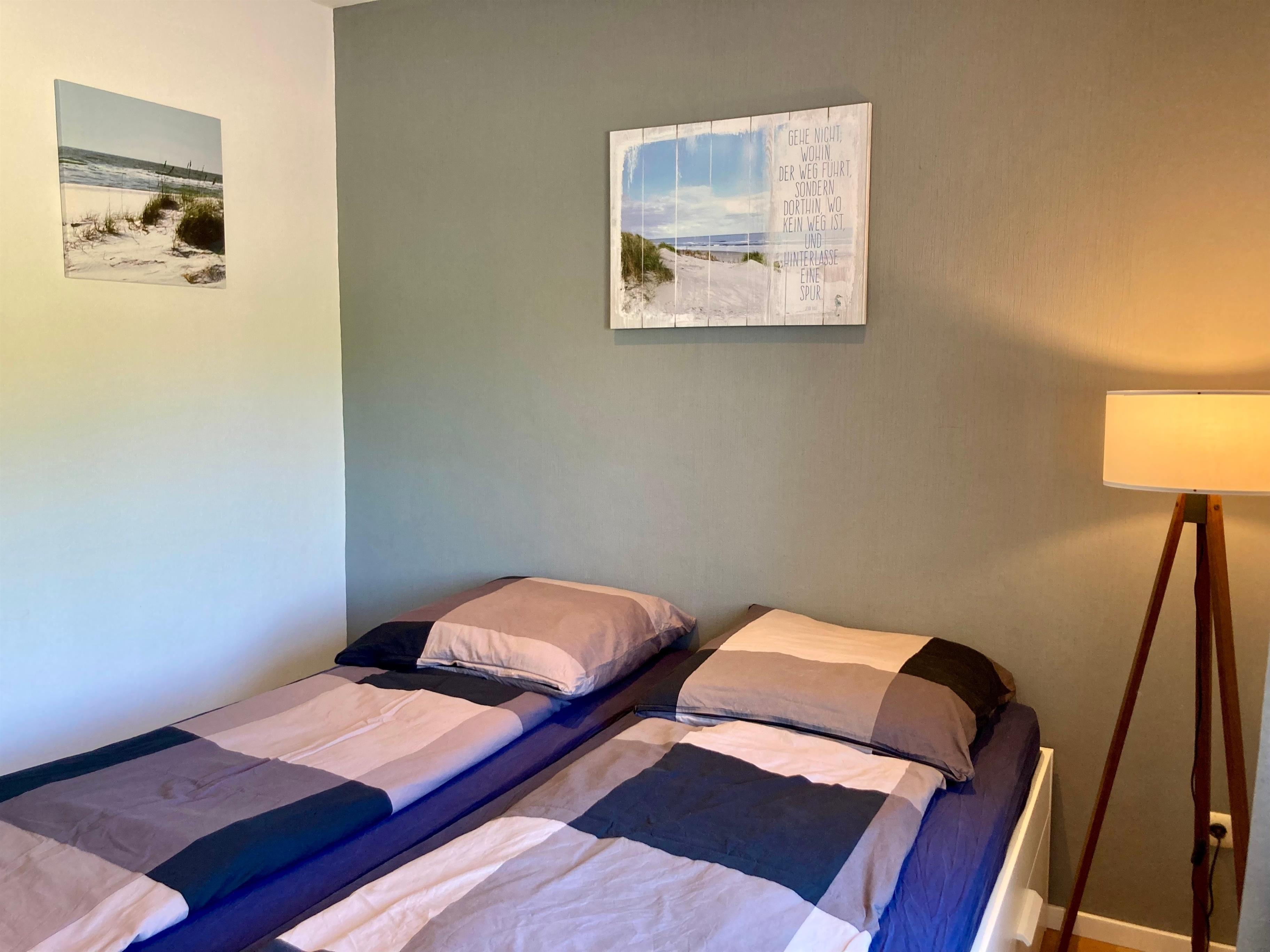 Freundlich-helle, gemütliche Einrichtung und gute Ausstattung, Auswahl an Deko-Elementen mit maritimem Touch, Vinylfußböden. Kleine Auswahl an Kinderbüchern/-spielen. Pkw-Stellplatz am Haus oder in Hausnähe.