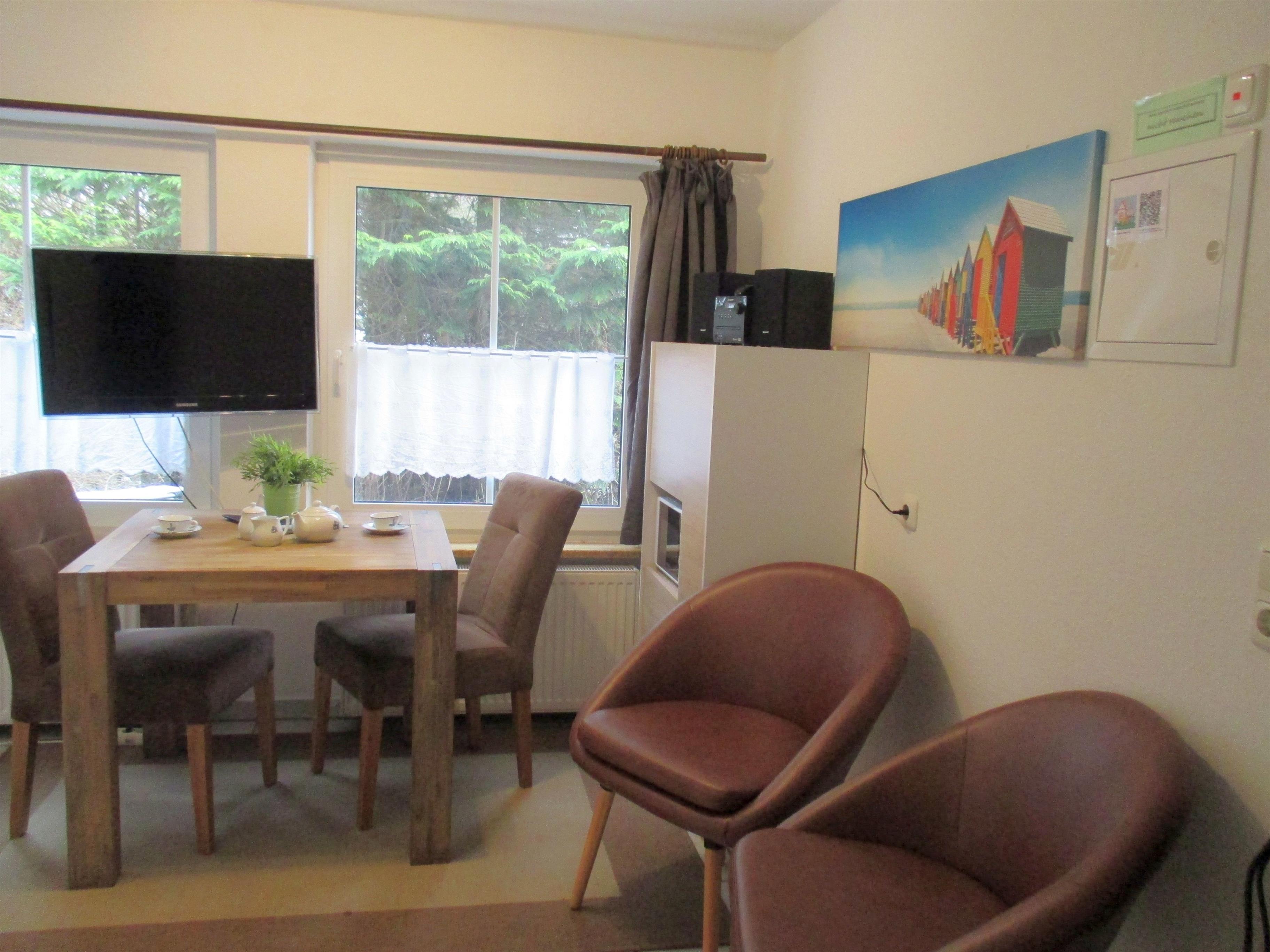 Die lichtdurchflutete Ferienwohnung ist gemütlich eingerichtet, so dass Sie sich vom ersten Urlaubstag an wohlfühlen können. Für Ihre Unterhaltung stehen WLAN, SAT-TV, CD-Radio, Bücher und Gesellschaftsspiele zur Verfügung.