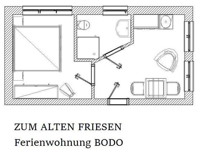 Herzlich willkommen in der gemütlichen Fewo BODO in Wangerland. Unser Ferienhaus "Zum alten Friesen" befindet sich naturnah vor den Toren Hooksiels. In dieser Fewo finden Sie einen Wohnraum mit Küche, ein Dusch-Bad und ein Schlafzimmer mit Doppelbett.