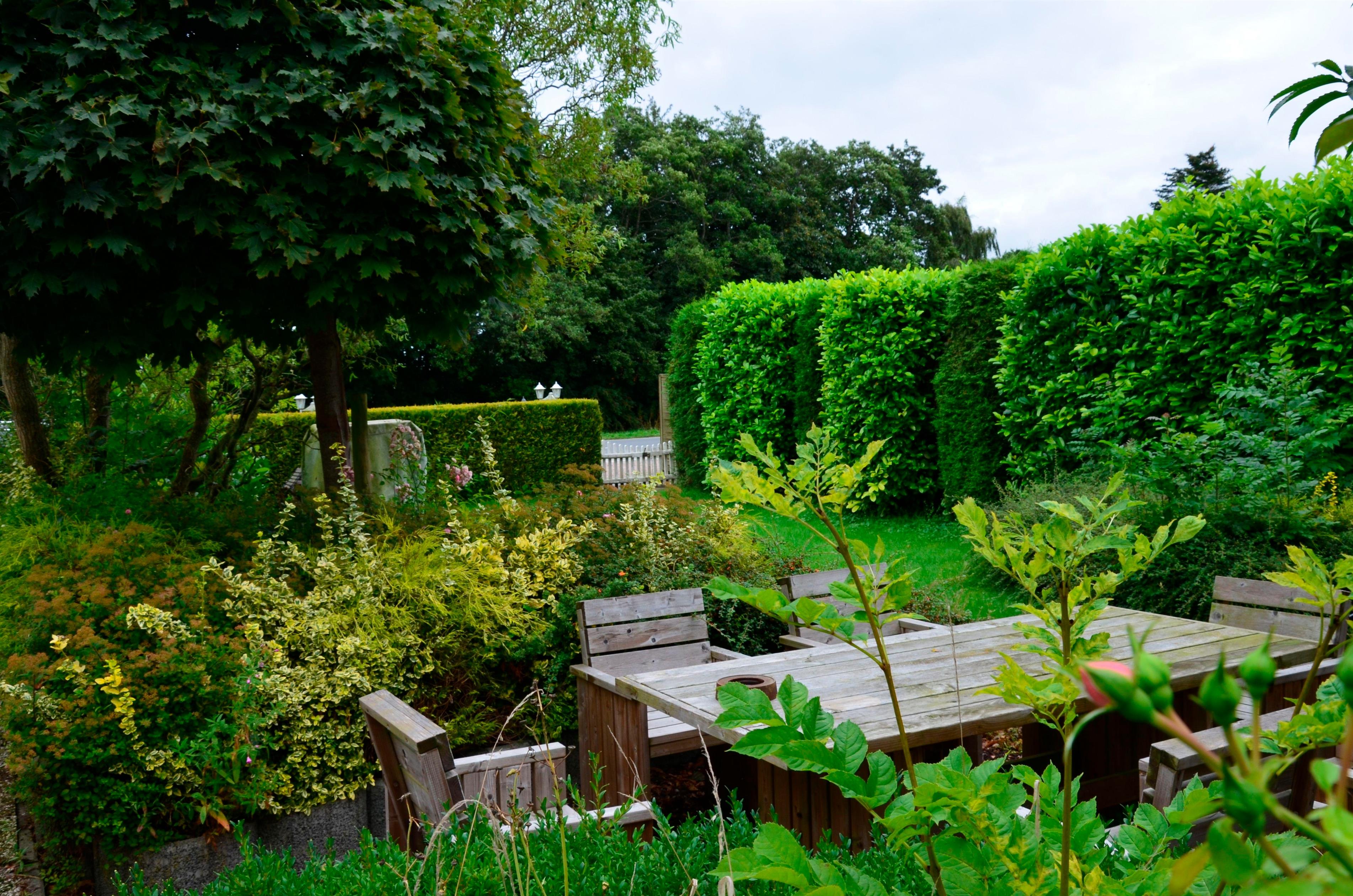 Der gemeinschaftlich genutzte Garten ist durch Bepflanzung gegliedert. Während der Gartensaison laden Gartenstühle, Tische, Kohlegrills und Sonnenschirme zu entspannten Stunden ein.