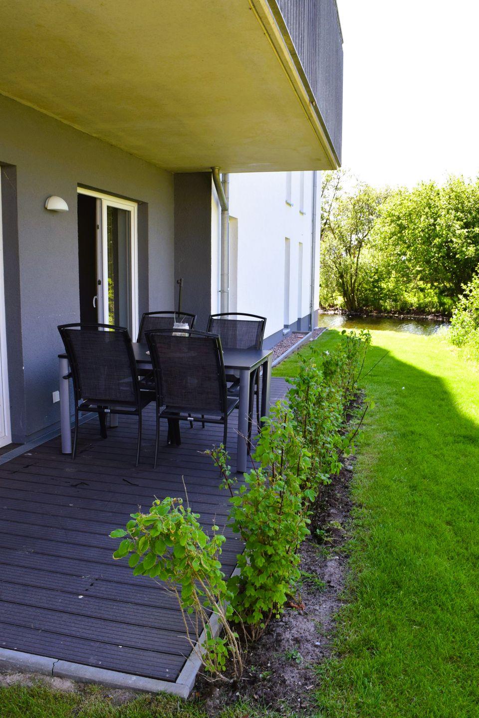 Moderne, hochwertige Ferienwohnung, Erdgeschoss, Sauna, großer Balkon, strandnah