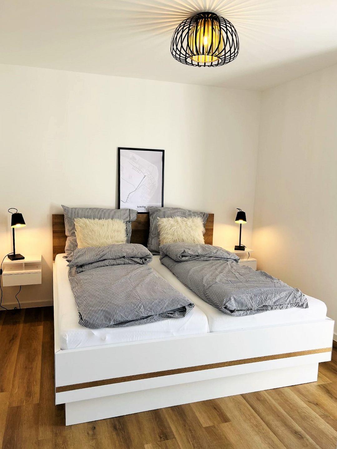 Im Schlafzimmer steht Ihnen ein Doppelbett mit Nachtkonsolen und einem Kleiderschrank zur Verfügung.