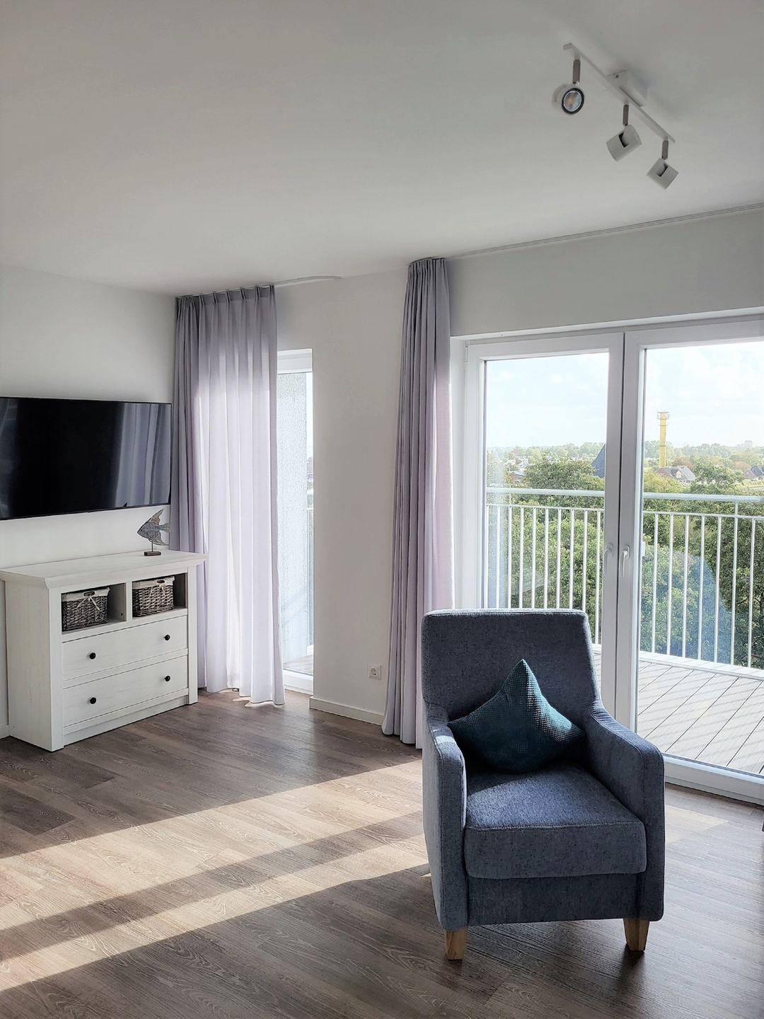 Moderne, hochwertige Ferienwohnung, Sauna, großer Balkon, strandnah