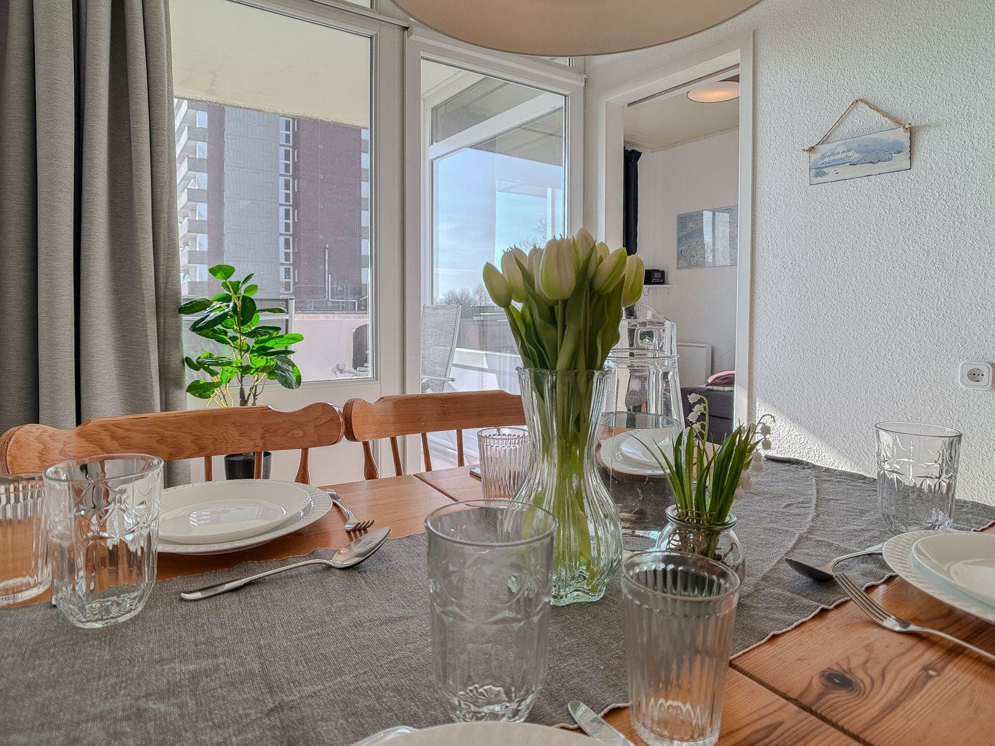 Die Ferienwohnung Sielblick (47 qm) in der ersten Etage eines Hochhauses bietet Komfort und Entspannung.