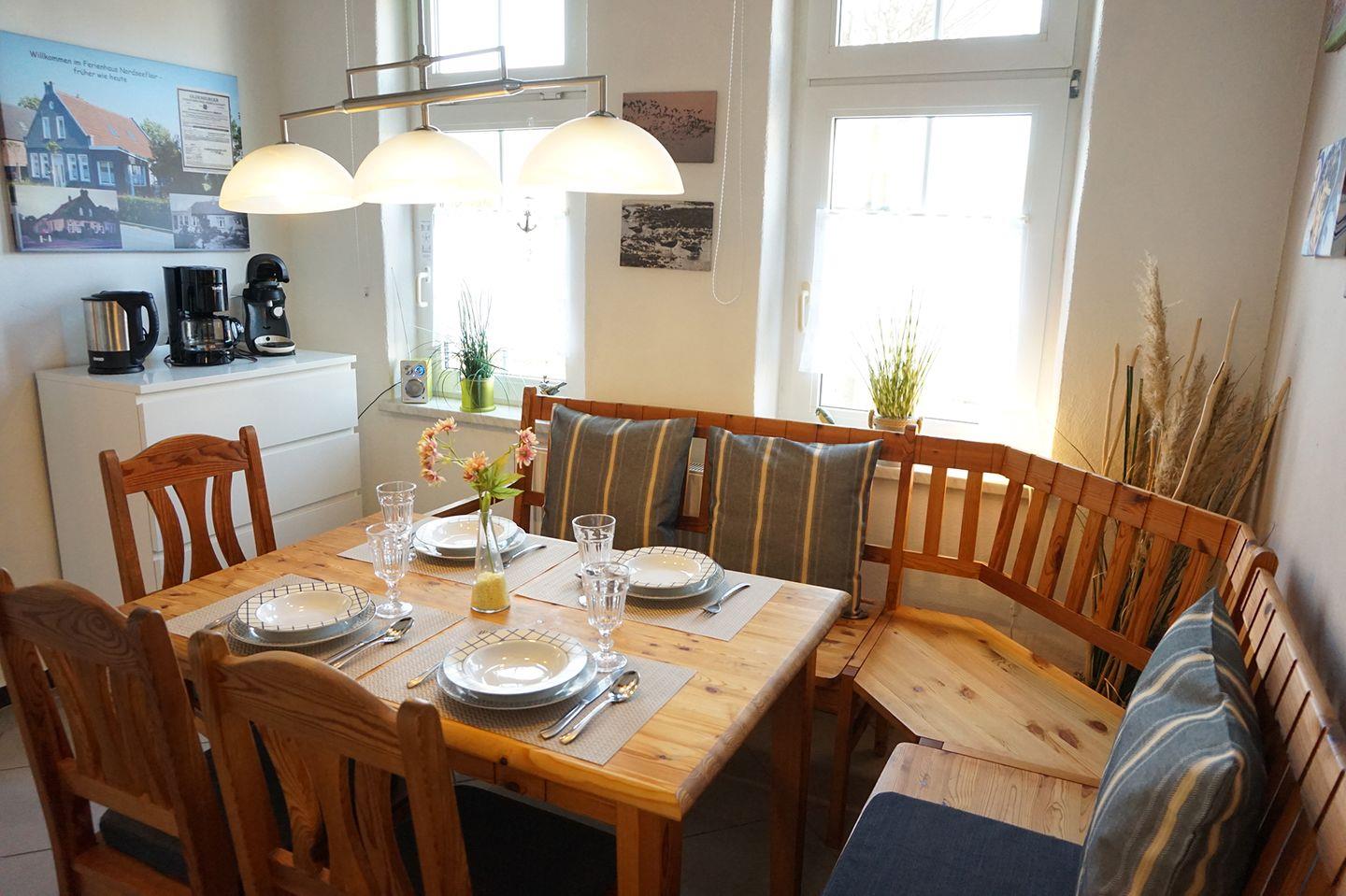 Der Eingang des Hauses befindet sich zur Straße gelegen. Die große Küche bietet mit Ihrer Essgruppe Platz für 5 Personen.