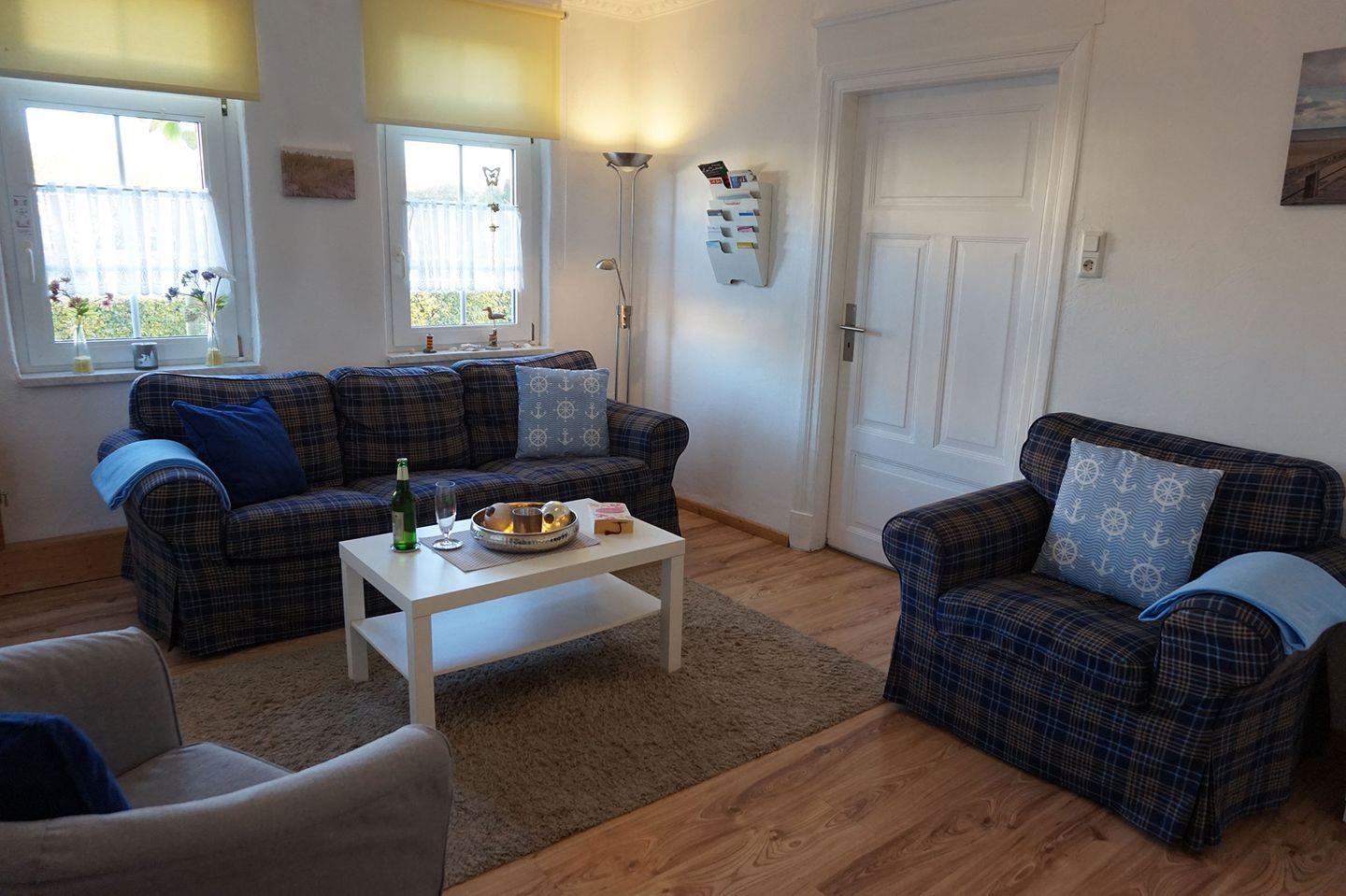 Das große helle und freundliche Wohnzimmer lädt mit einem 3er Sofa sowie 2 Sesseln zu gemütlichen Abenden ein. Für entspannte Stunden steht im angrenzenden Wintergarten eine Relaxliege zur Verfügung.