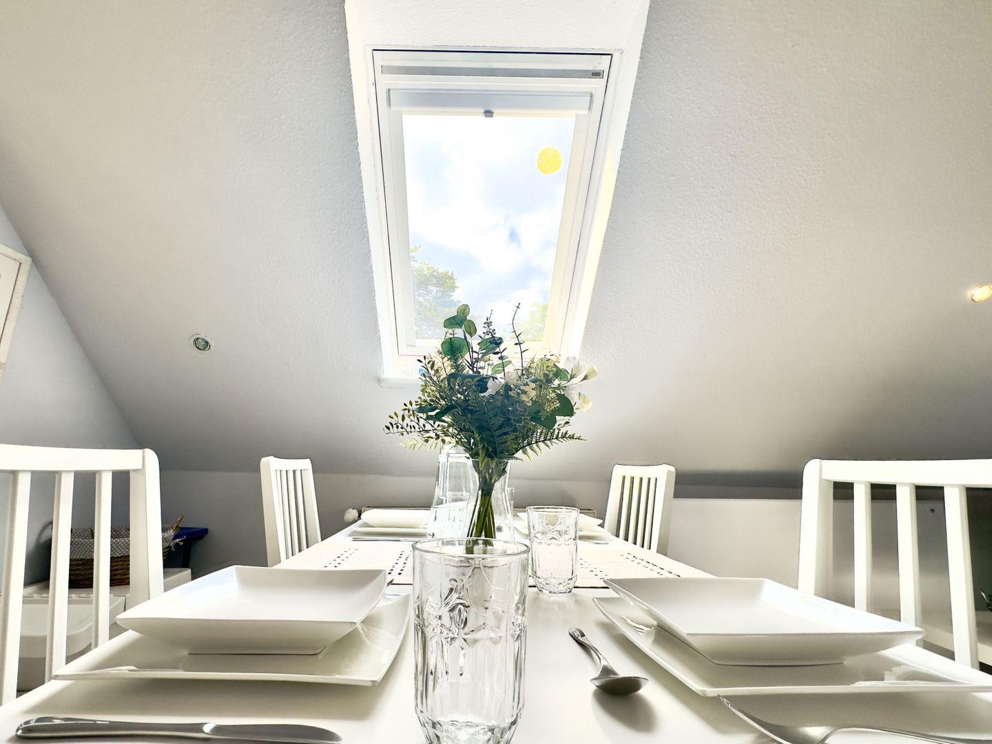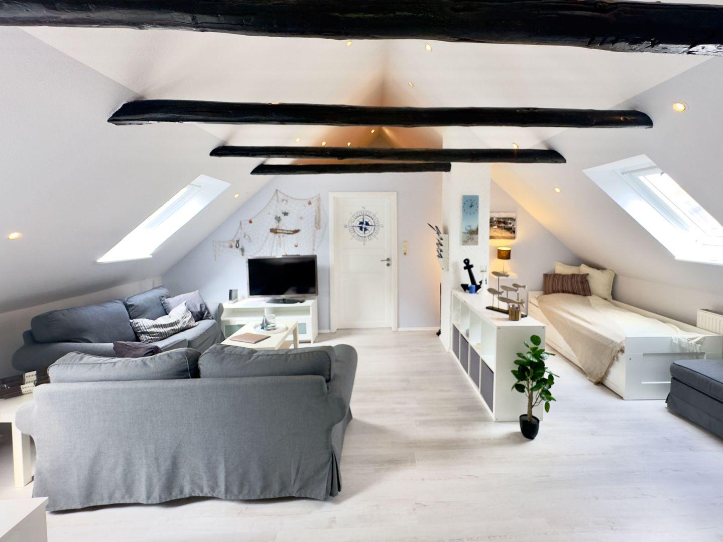 Es erwartet Sie eine ca. 60qm große Ferienwohnung im Dachgeschoß eines Zweifamilienhauses, ein Schlafzimmer ausgestattet mit einem Doppelbett, ein Wohn-/Schlafraum ausgestattet mit einem Einzelbett, offene Küche, Esszimmerbereich, Badezimmer mit Badewanne, Gartenanteil mit Terrasse