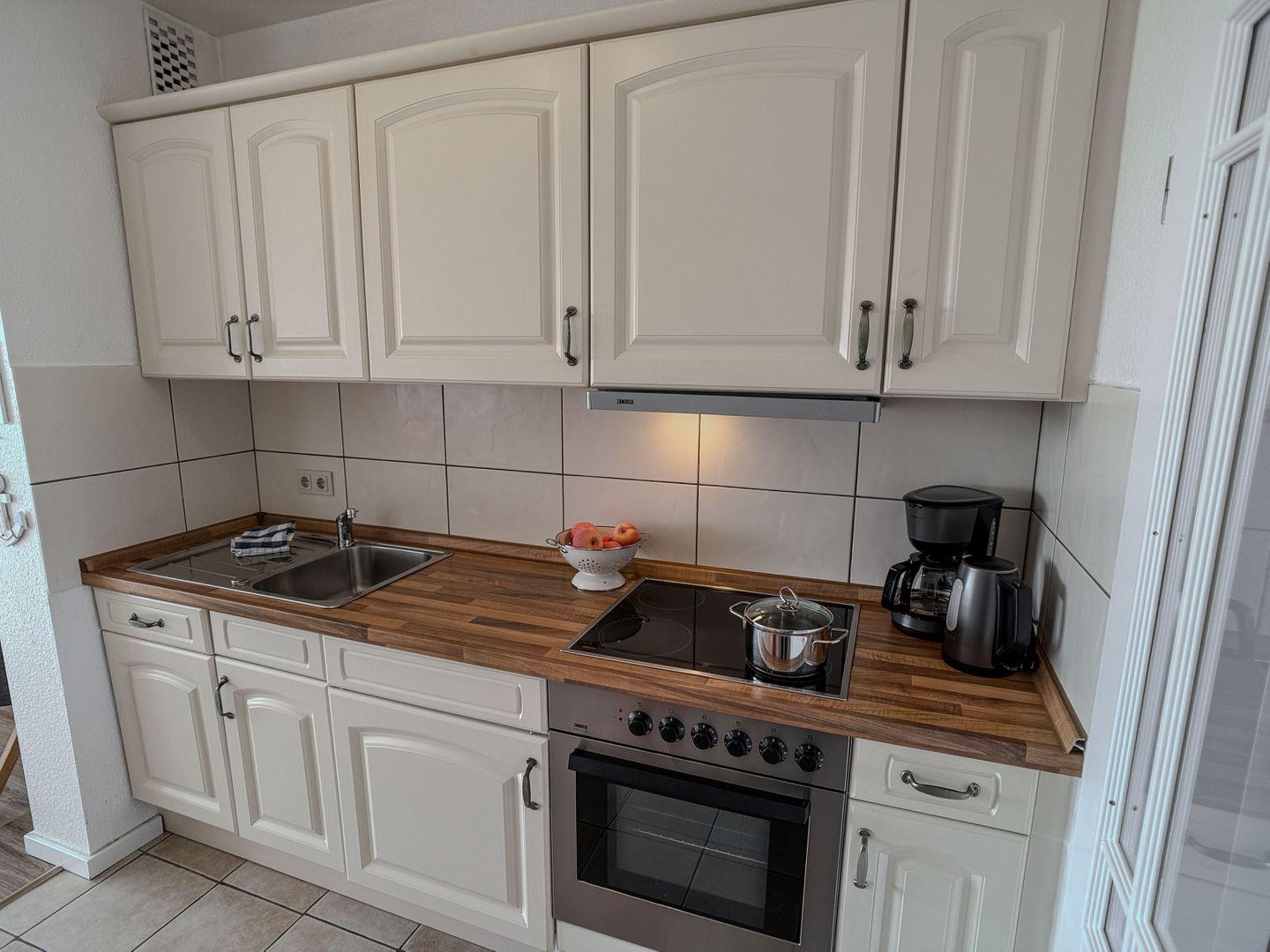 Die voll ausgestattete Küchenzeile ermöglicht Ihnen Flexibilität – ob ausgiebiges Frühstück, ein schneller Snack oder ein selbstgekochtes Abendessen: Hier fehlt es an nichts.
