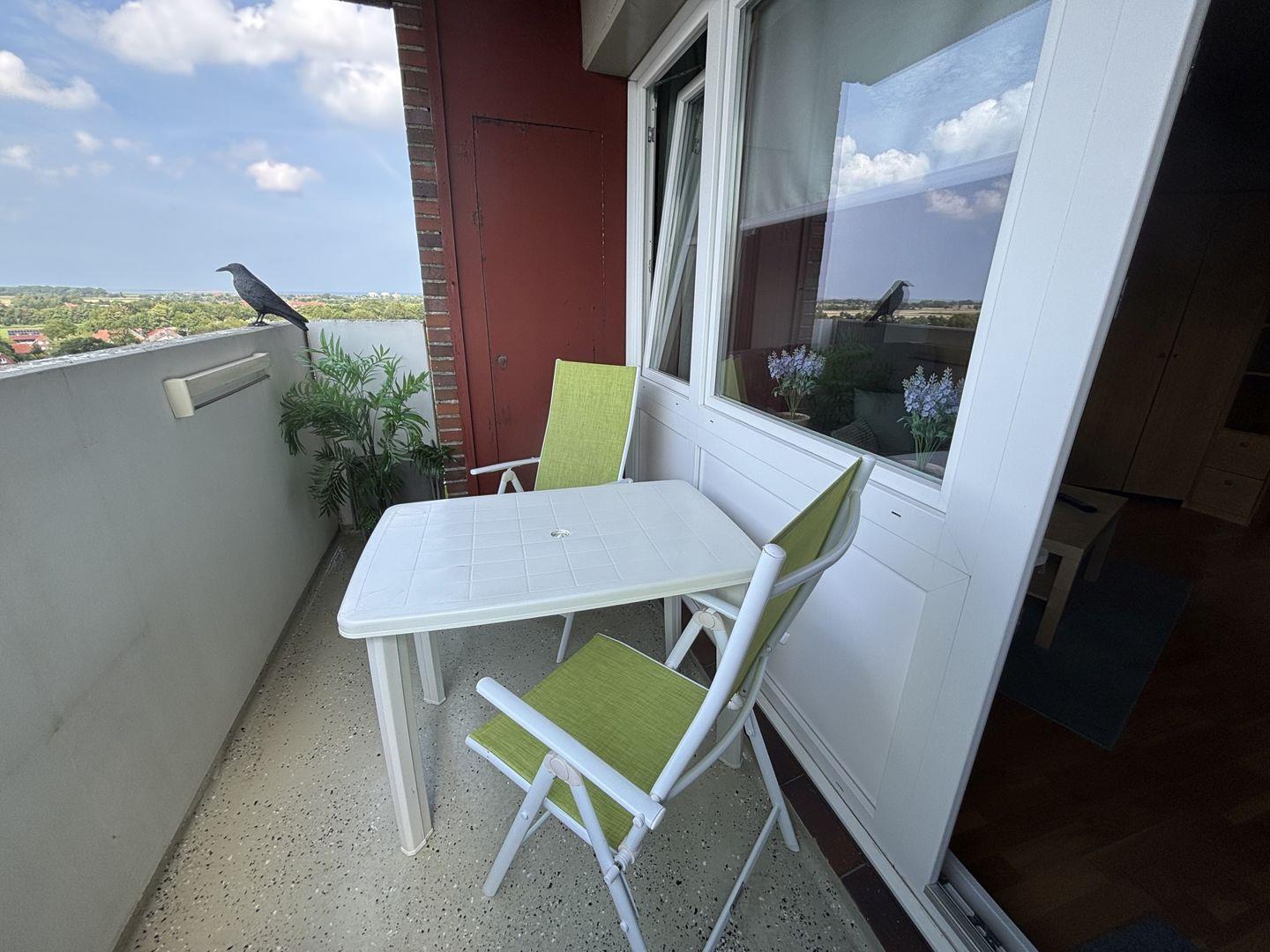 Der kleine Meerengel in der 10. Etage bietet einen eindrucksvollen Ausblick. Die Wohnung verfügt über ein Wohn- und Schlafbereich mit separater Küche. Durch die zwei Schrankbetten bleibt reichlich Platz für die täglichen Gewohnheiten. Das Frühstück lässt sich bei Schietwetter am Esstisch mit zwei Stühlen oder bei schönem Wetter auf dem Balkon einnehmen. Selbstverständlich soll die Kommunikation per Internet nicht zu kurz kommen.