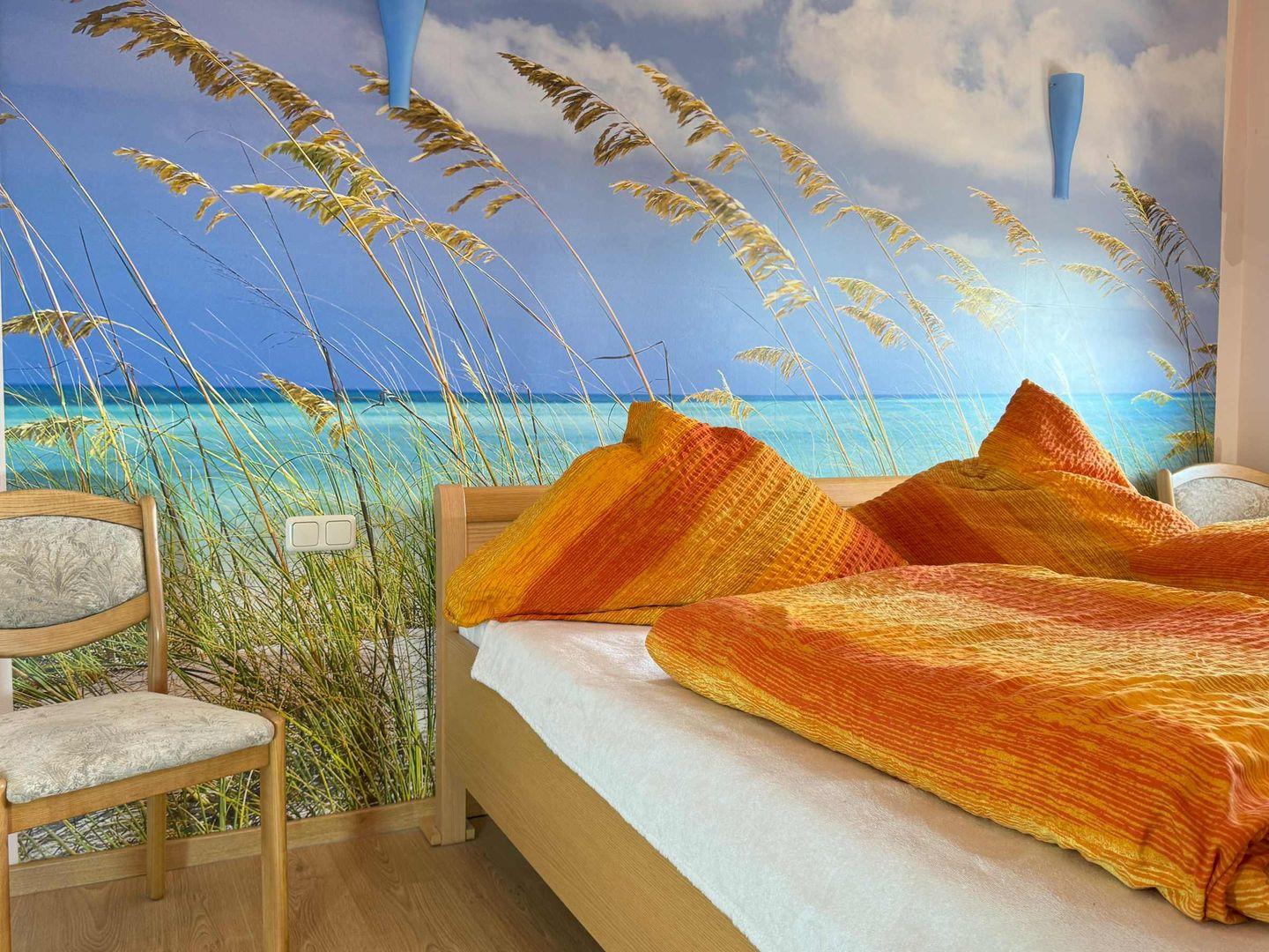 Das Wohnzimmer enthält eine gemütliche Sitzecke mit Fernseher und einer Essecke. Die gut ausgestattete Küche ist separat enthält alles was man für einen entspannten Urlaub braucht. Das Schlafzimmer ist mit einem großen Doppelbett ausgestattet.