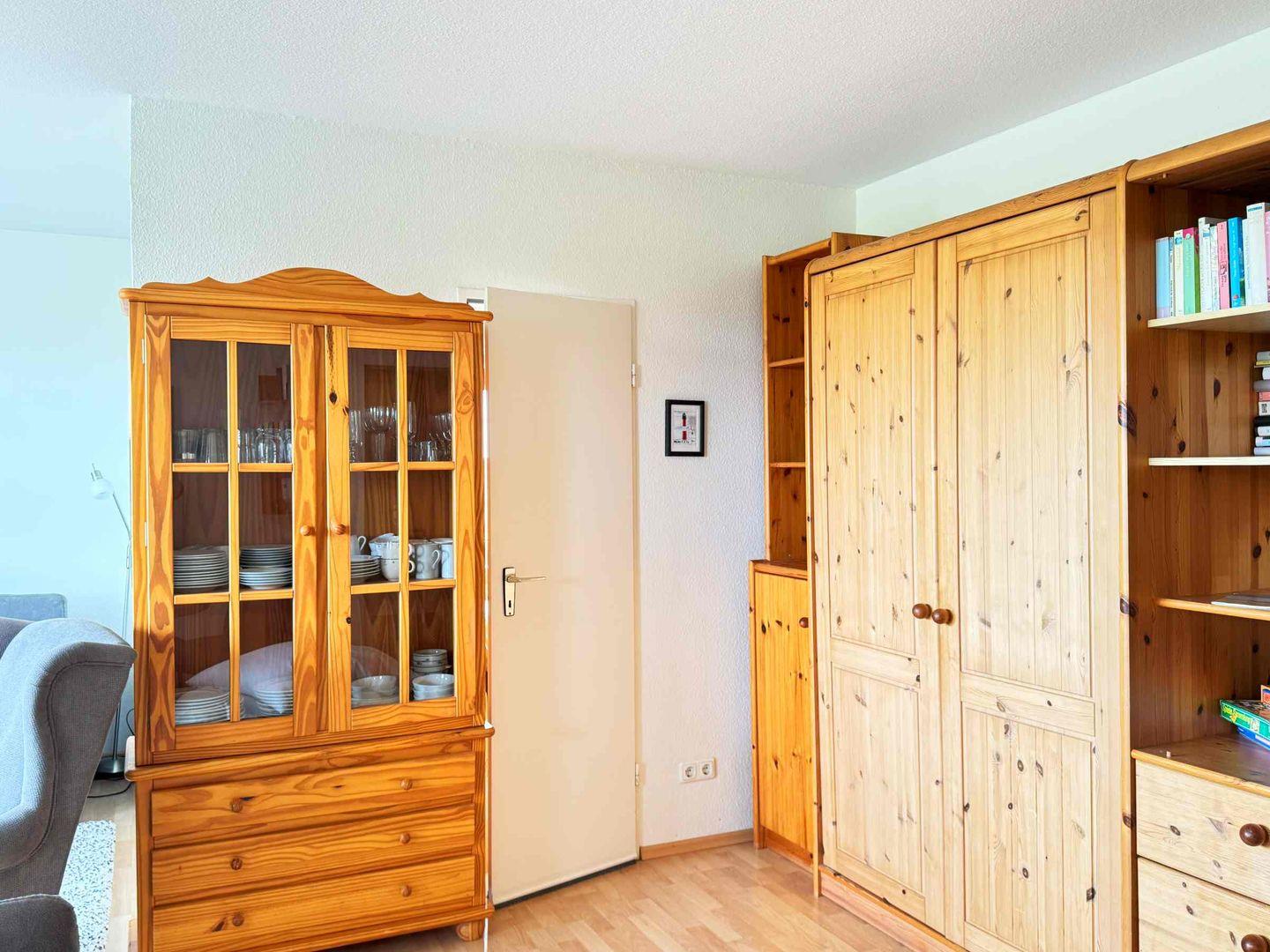 Diese helle gemütlich eingerichtete Wohnung mit einem Schlafzimmer für 2-3 Personen mit Internet befindet sich in der zweiten Etage. Die Küche ist mit Spülmaschine, Plattenherd, Mikrowelle, Wasserkocher, Eierkocher und Toaster ausgestattet. Im Wohnzimmer befindet sich eine neue Schlafcouch, 2 Sessel, Flachbild-TV, CD-Radio, viele Bücher und Gesellschaftsspiele. Der große Balkon zur Meerseite hat einen wunderschönen Ausblick.