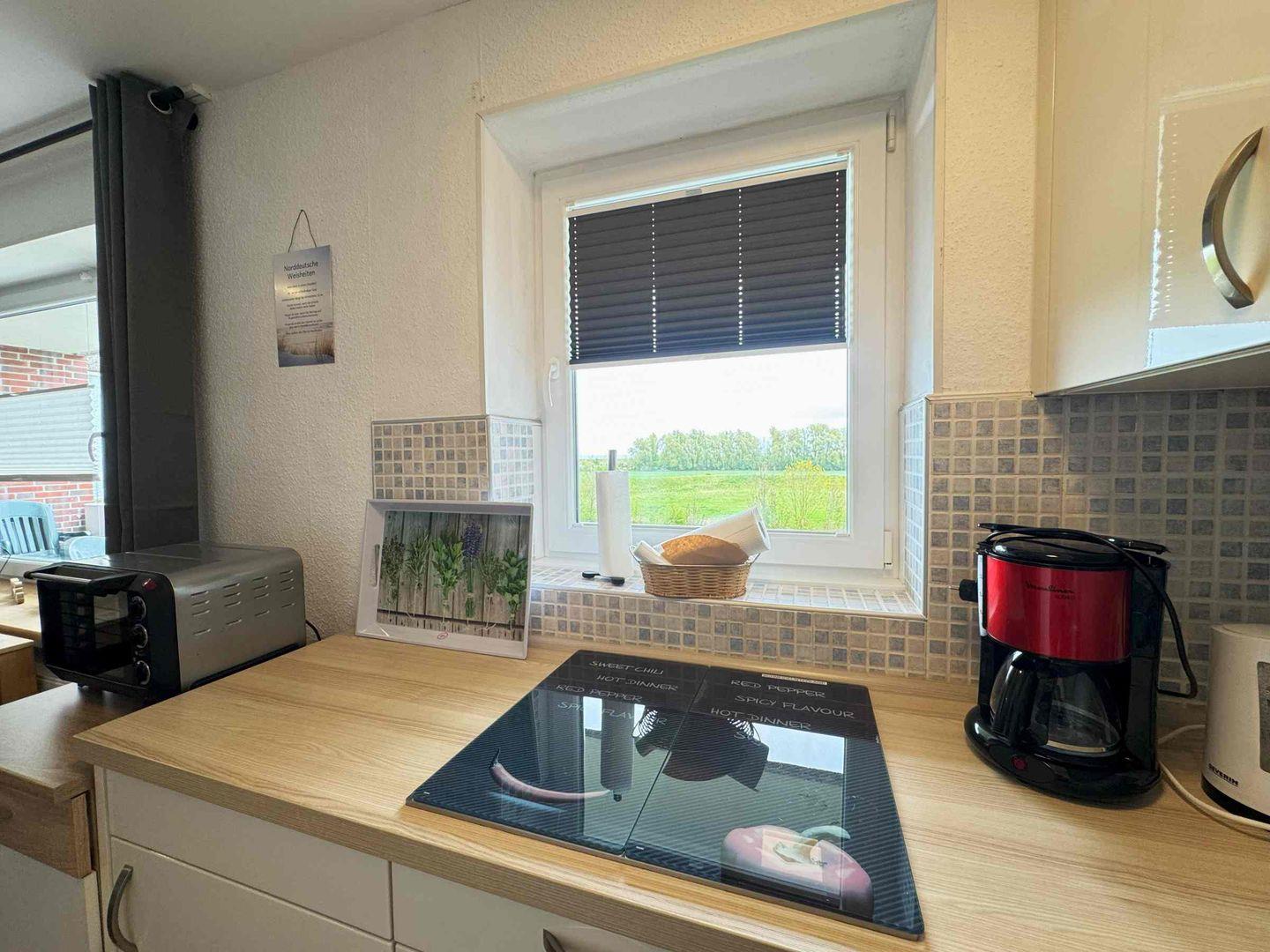 Whg. Deichkieker mit schönen Blick und Balkon Richtung Meer mit Internet und 2 Fahrrädern. Die renovierte Wohnung in der 2. Etage mit einem Schlafzimmer und offener Küche bietet mit seinen offenen Zimmern eine herrliche Aussicht. Auf dem großzügigem Balkon mit Blick zum Meer und auf den Deich mit den Schafen können Sie ihr Frühstück sonnig genießen.