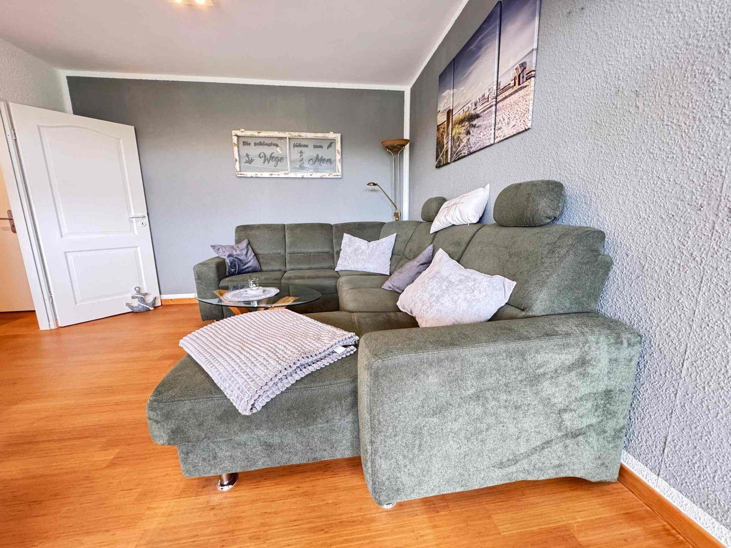 Diese moderne und klare Wohnung bietet mit seinen offenen Zimmern eine herrliche Aussicht. Auf dem großzügigem Balkon mit Blick zum Meer und auf den Deich mit den Schafen können Sie ihr Frühstück sonnig genießen.