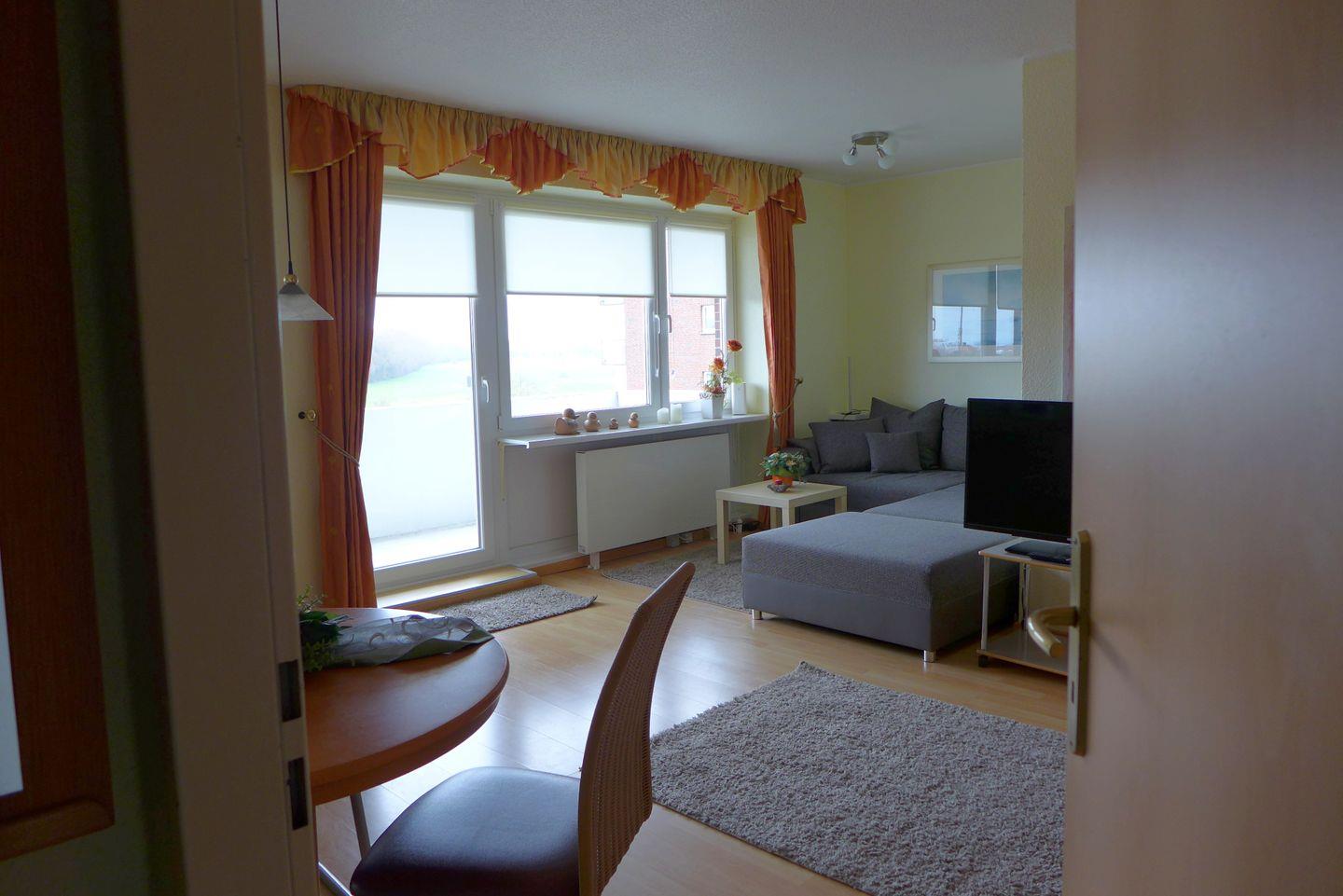 Die Wohnung liegt in der 3. Etage mit Blick und Balkon zum Meer. Sie hat ein extra Schlafzimmer mit zwei einzelnen Betten. Das Wohnzimmer mit offener Küche, einem Essbereich und einer schöner Wohnlandschaft lädt zum verweilen ein.