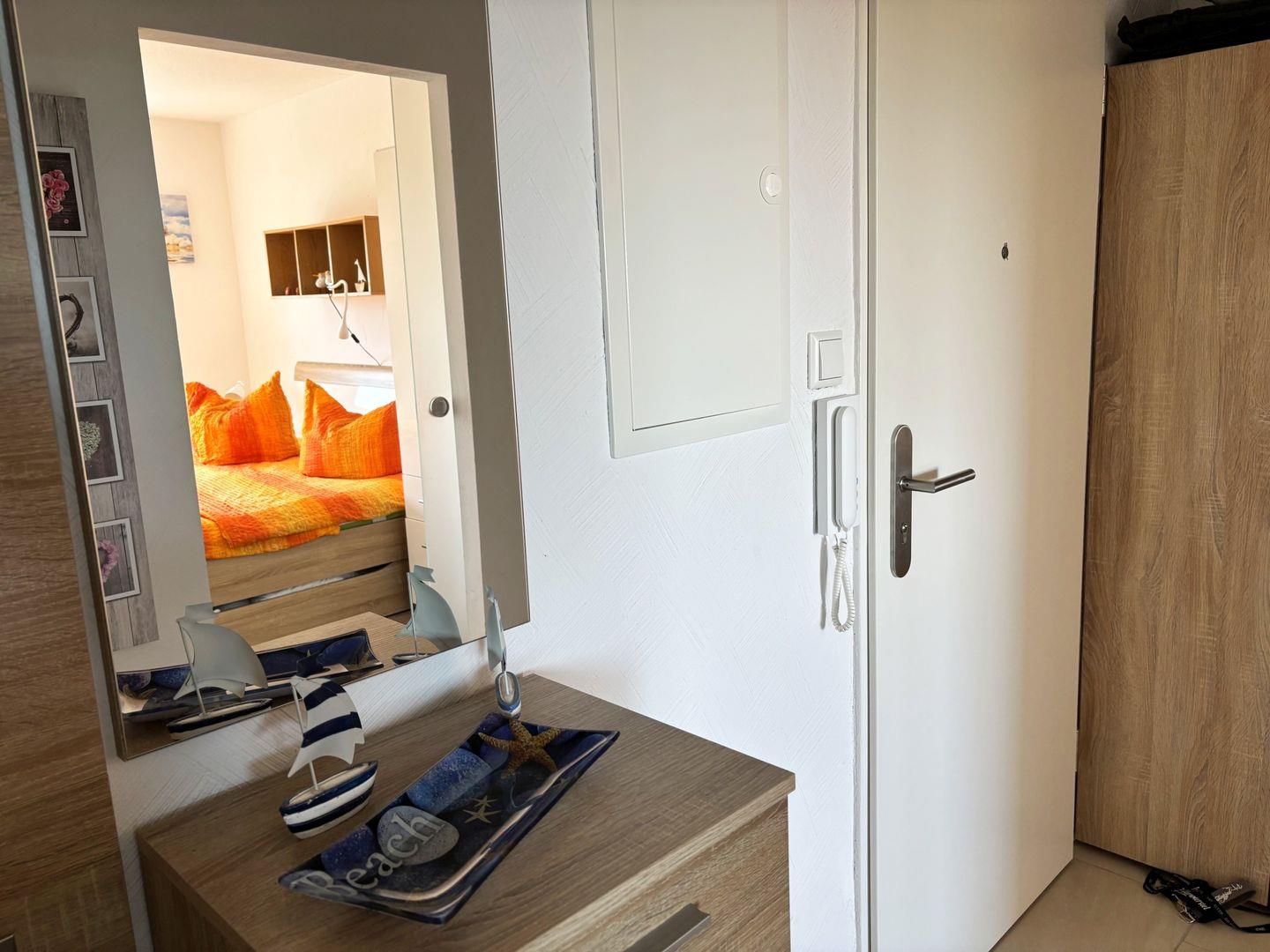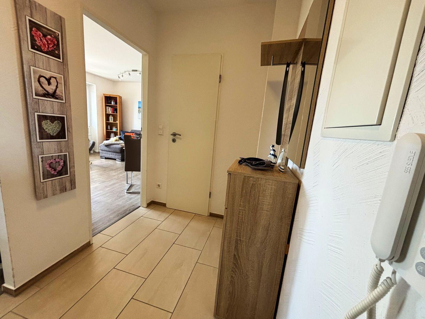 Das Duschbad ist frisch renoviert. Der Flur ist mit Garderobe, Schuh und Kofferschrank ausgestattet.