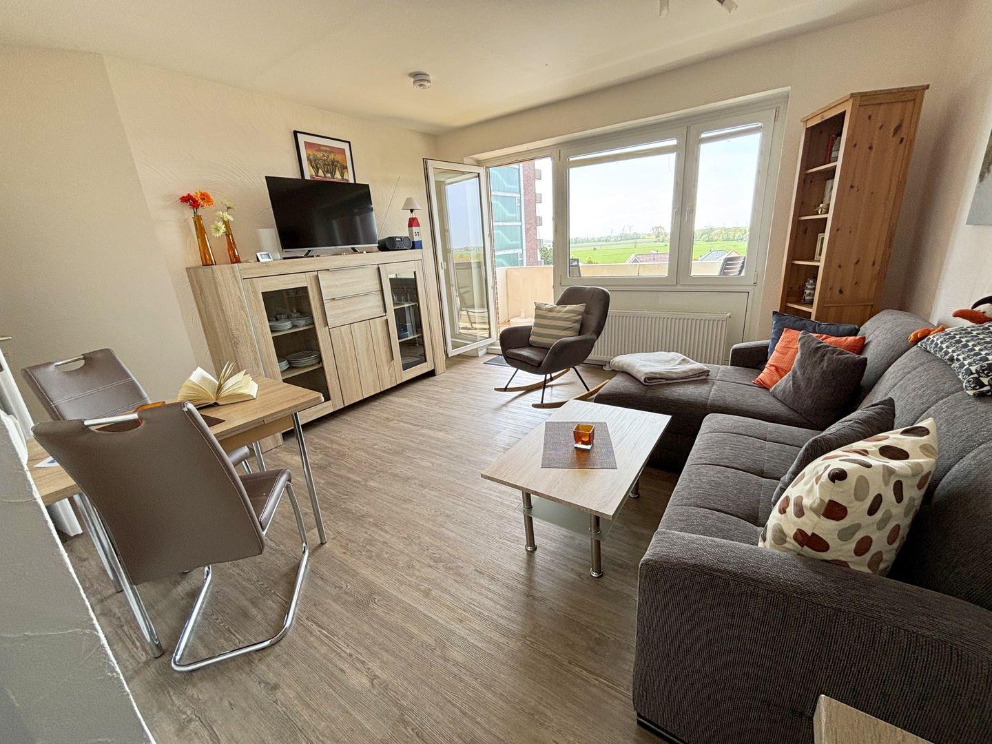 Das Haus hat eine Sonnenterrasse mit Liegefläche im 9`ten Stock mit einem herrlichen Bick auf Horumersiel und die Nordseeküste.