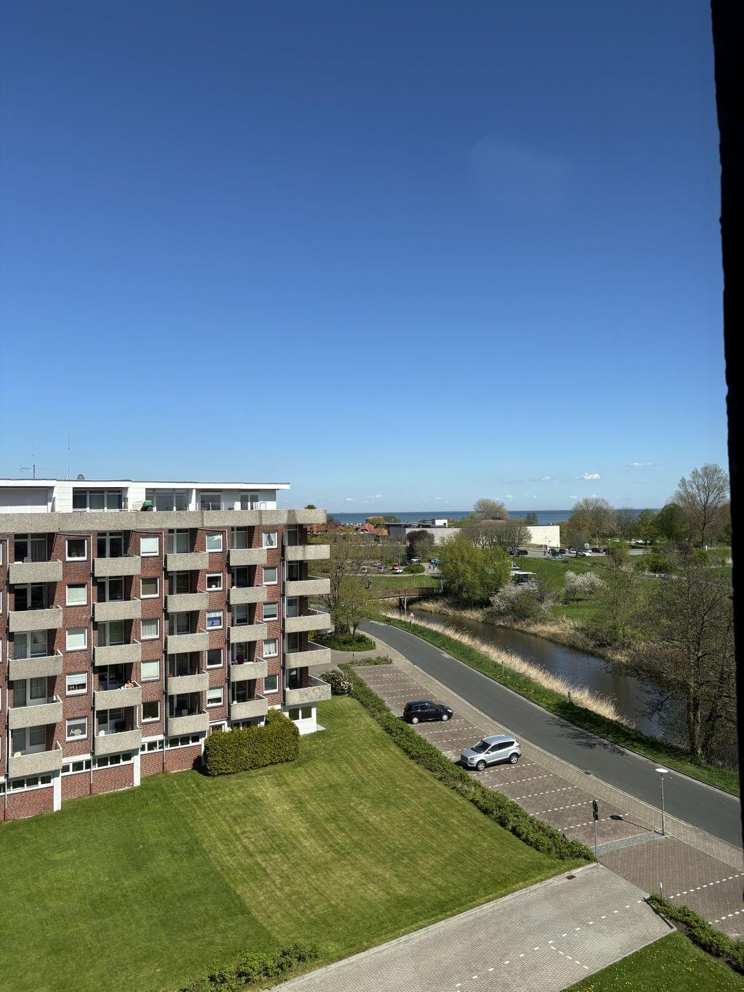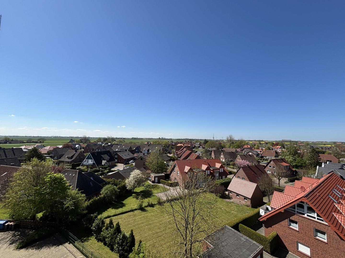 Auf dem Balkon haben sie Blick ins schöne Wangerländer Umland und den ganzen Nachmittag Sonne.