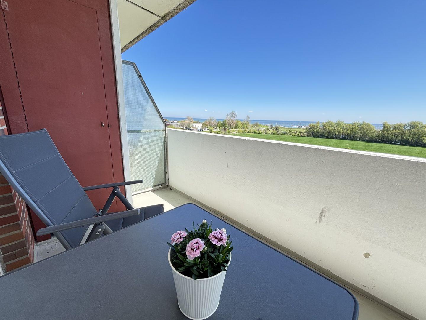 Diese kleine Ein-Zimmer-Wohnung mit tollem Meerblick, befindet sich im 6`ten Stock. Sie ist mit dem Fahrstuhl einfach zu erreichen. Im Wohnzimmer ist ein ausklappbares, doppeltes Schrankbett, eine gemütliche Sofaecke mit Flachbildfernseher und ein Esstisch mit Stühlen.