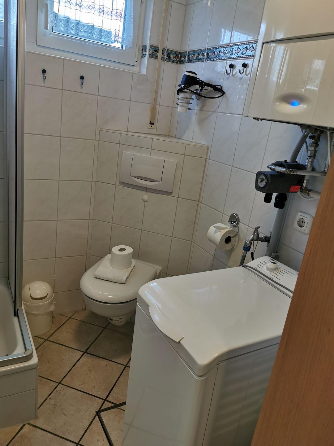 Die im Badezimmer vorhandene Waschmaschine steht für Ihren Aufenthalt zur Verfügung.