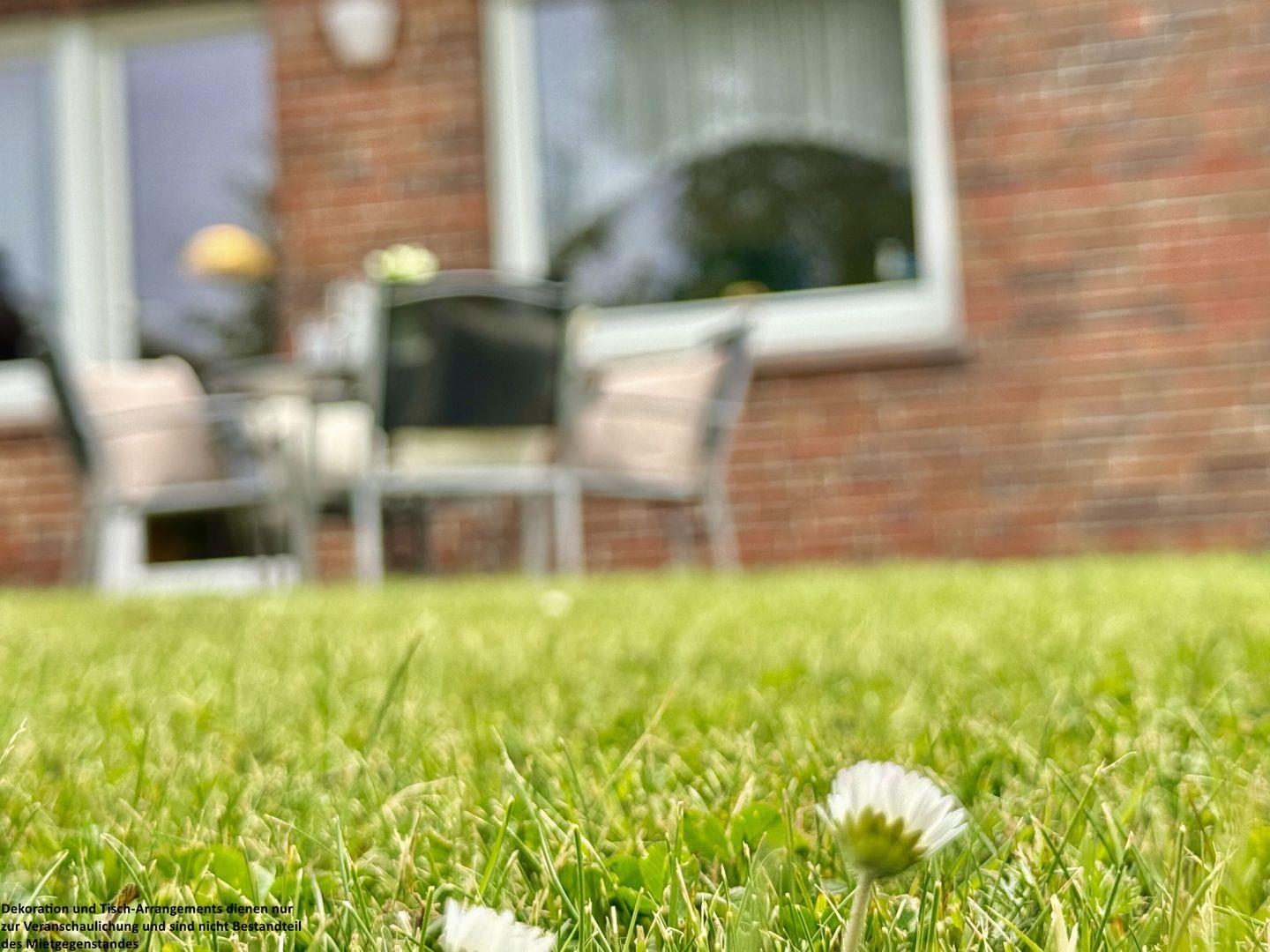 Die vorhandene Rasenfläche lädt zum Sonnenbaden ein.