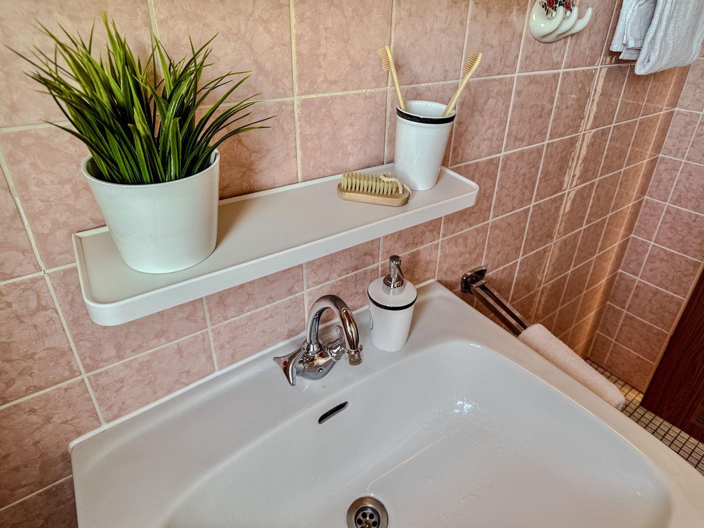 Das Badezimmer ist funktional und bietet ausreichend Platz für Ihre Morgenhygiene.