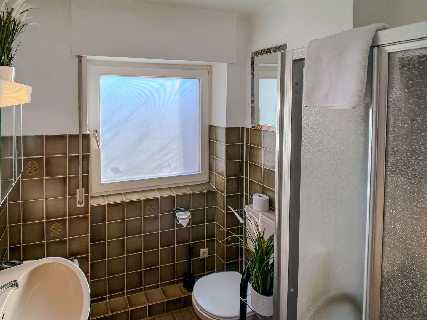 Das Badezimmer – schlicht, funktional und ehrlich – bietet Ihnen alles, was Sie für die tägliche Pflege brauchen. Kein überflüssiger Schnickschnack, sondern praktische Klarheit, die Ihnen Raum für das Wesentliche lässt: sich selbst.