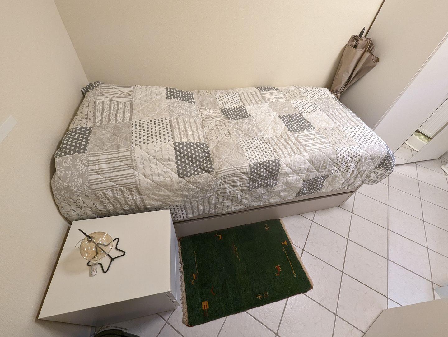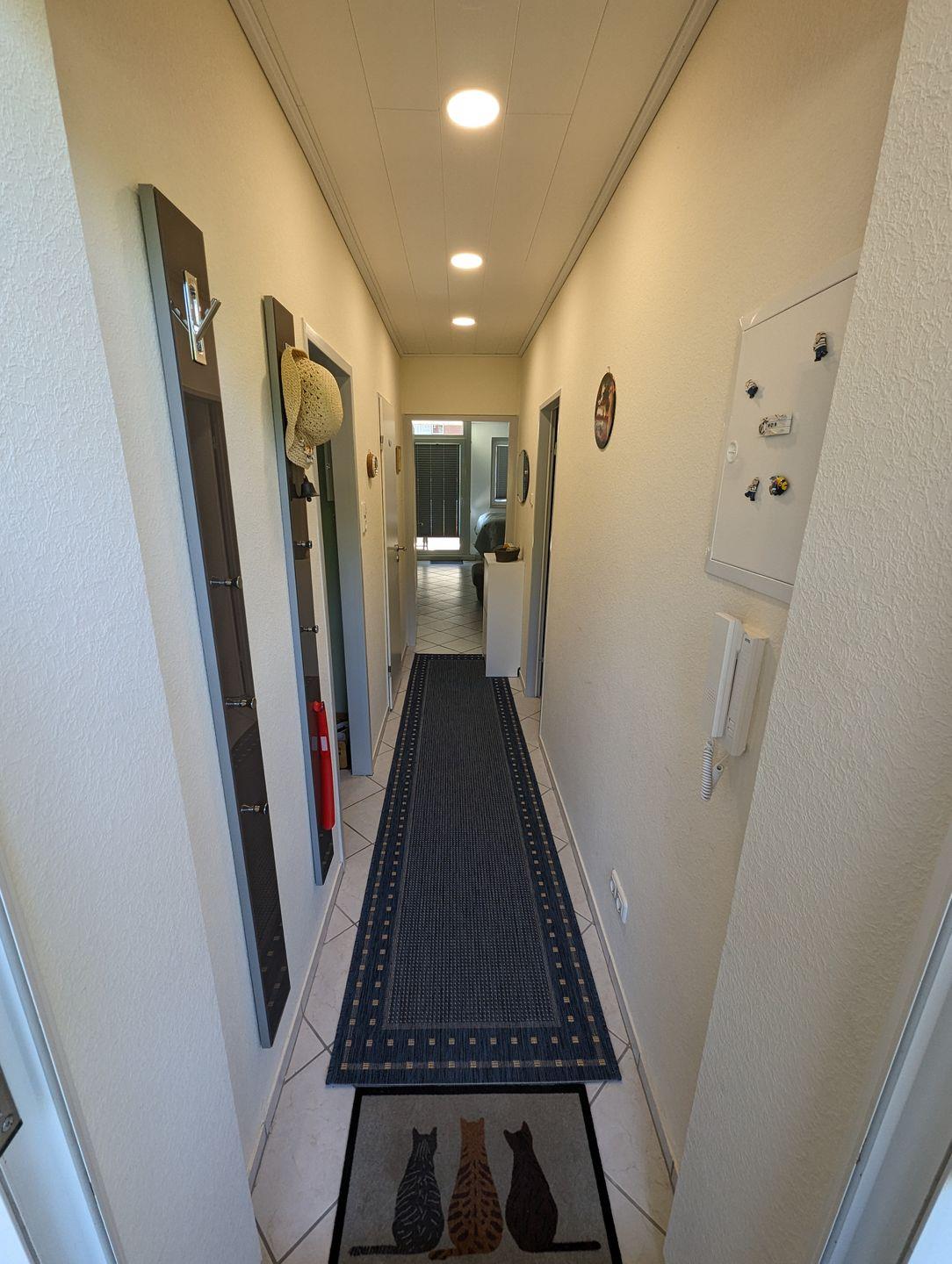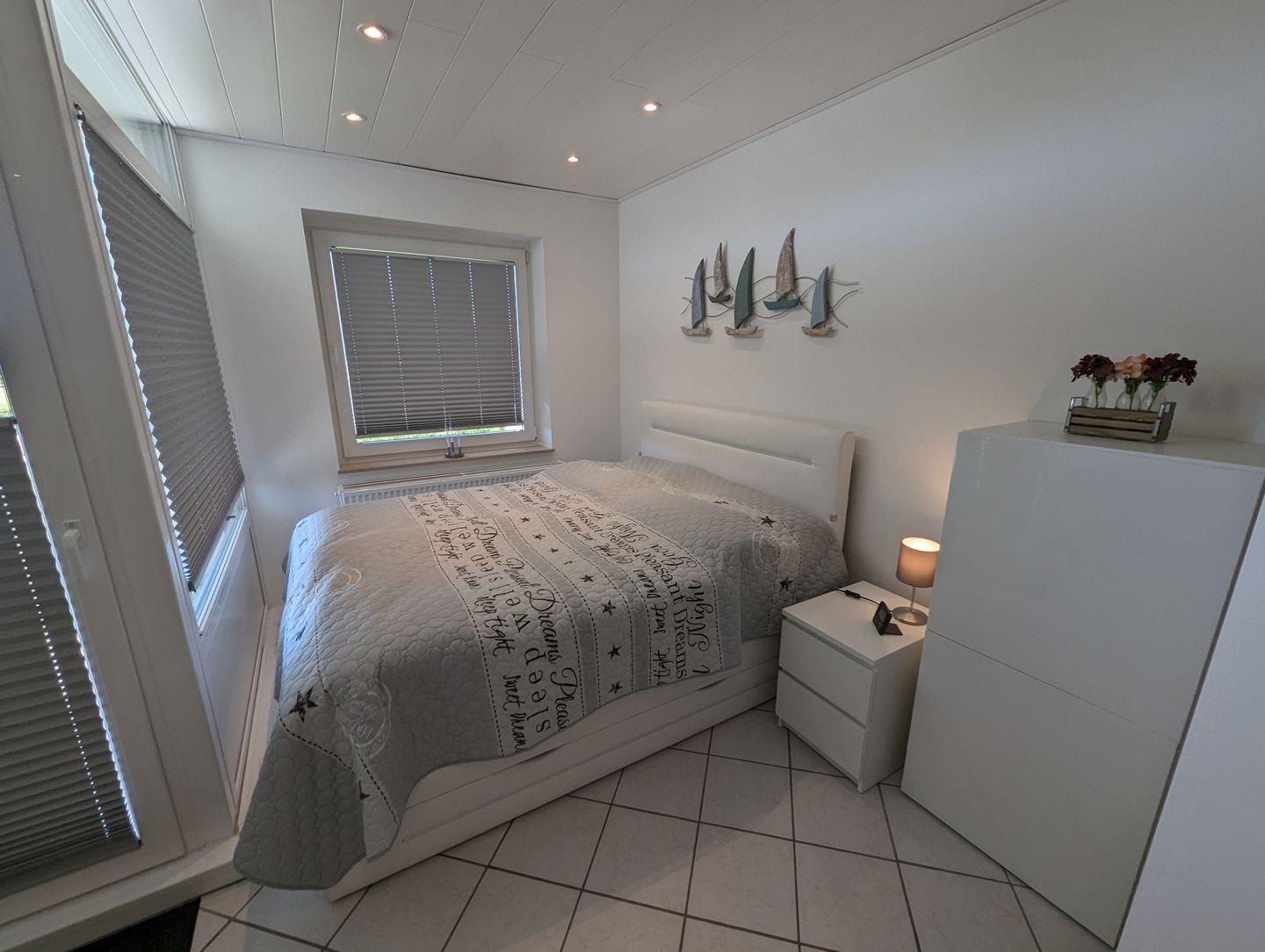 Das helle und moderne Badezimmer bietet alles für Ihre morgendliche Hygiene, während die voll ausgestattete Küche über den Flur leicht erreichbar ist und Ihnen die Möglichkeit zur Selbstversorgung bietet. Im separaten Schlafzimmer findet eine dritte Person Platz, und der große Kleiderschrank bietet ausreichend Stauraum für Ihre persönlichen Dinge.
