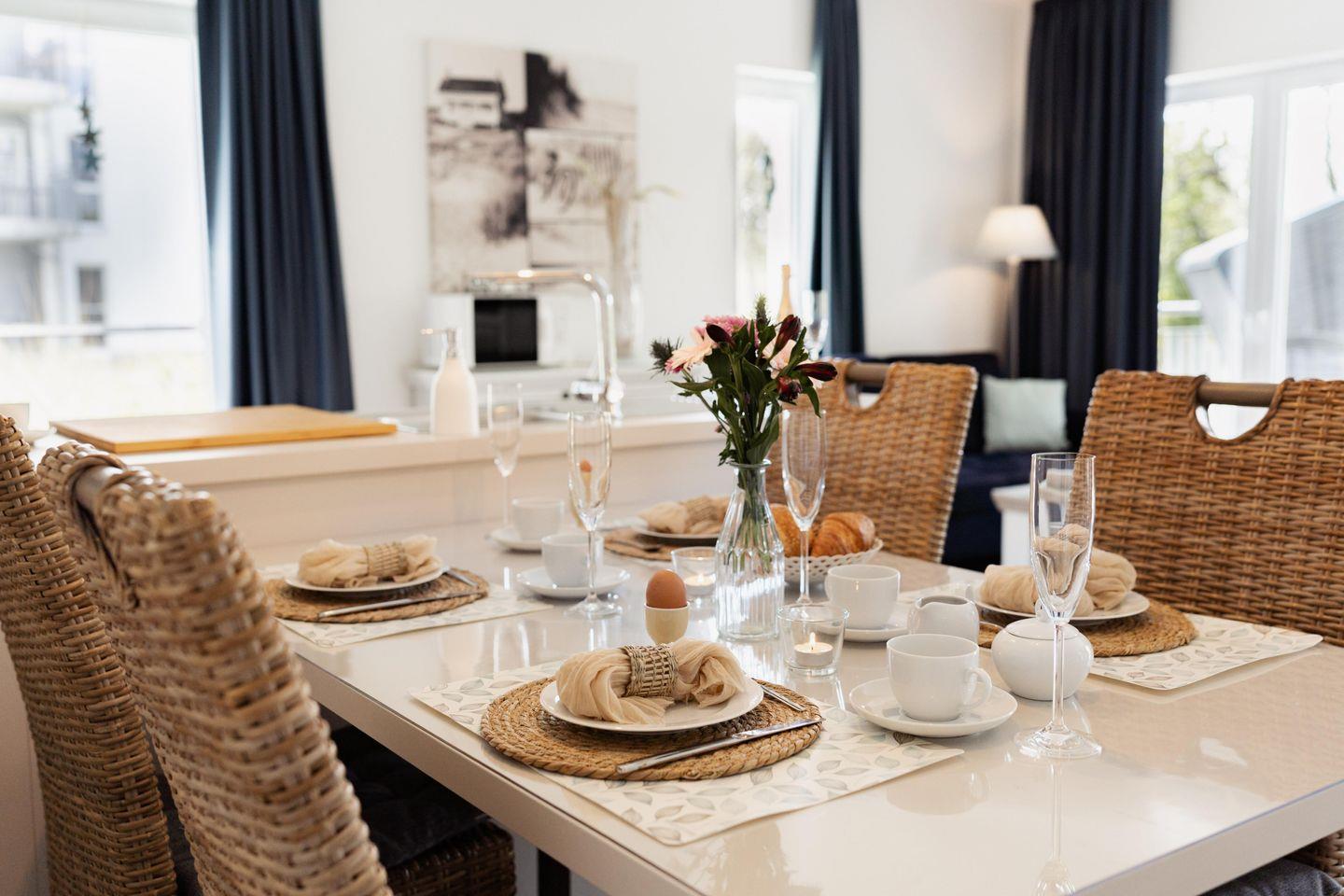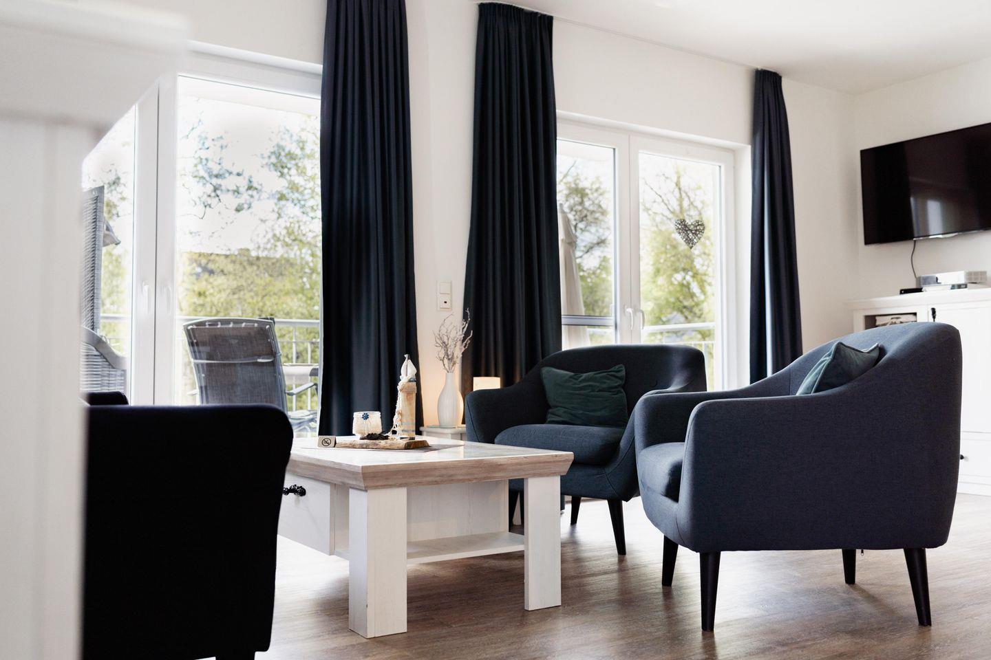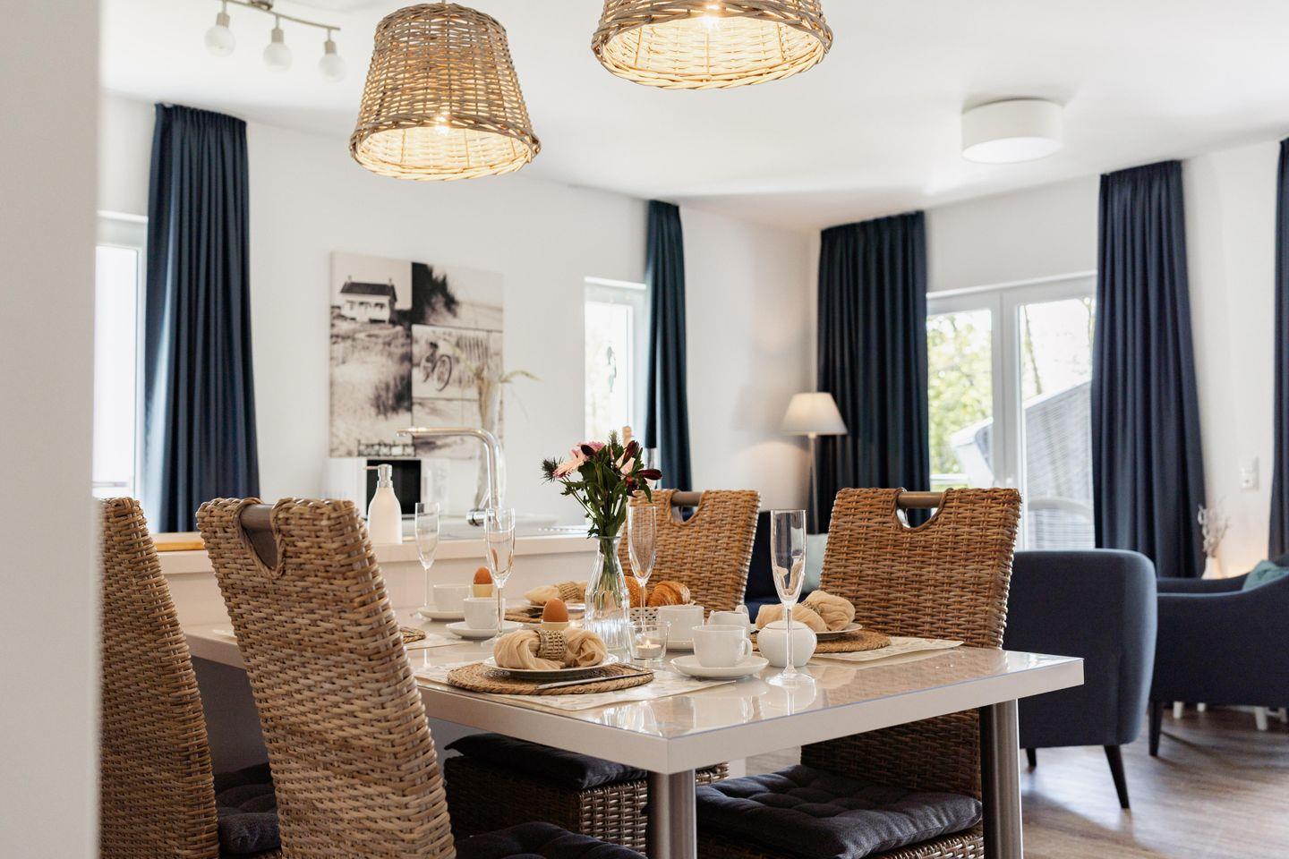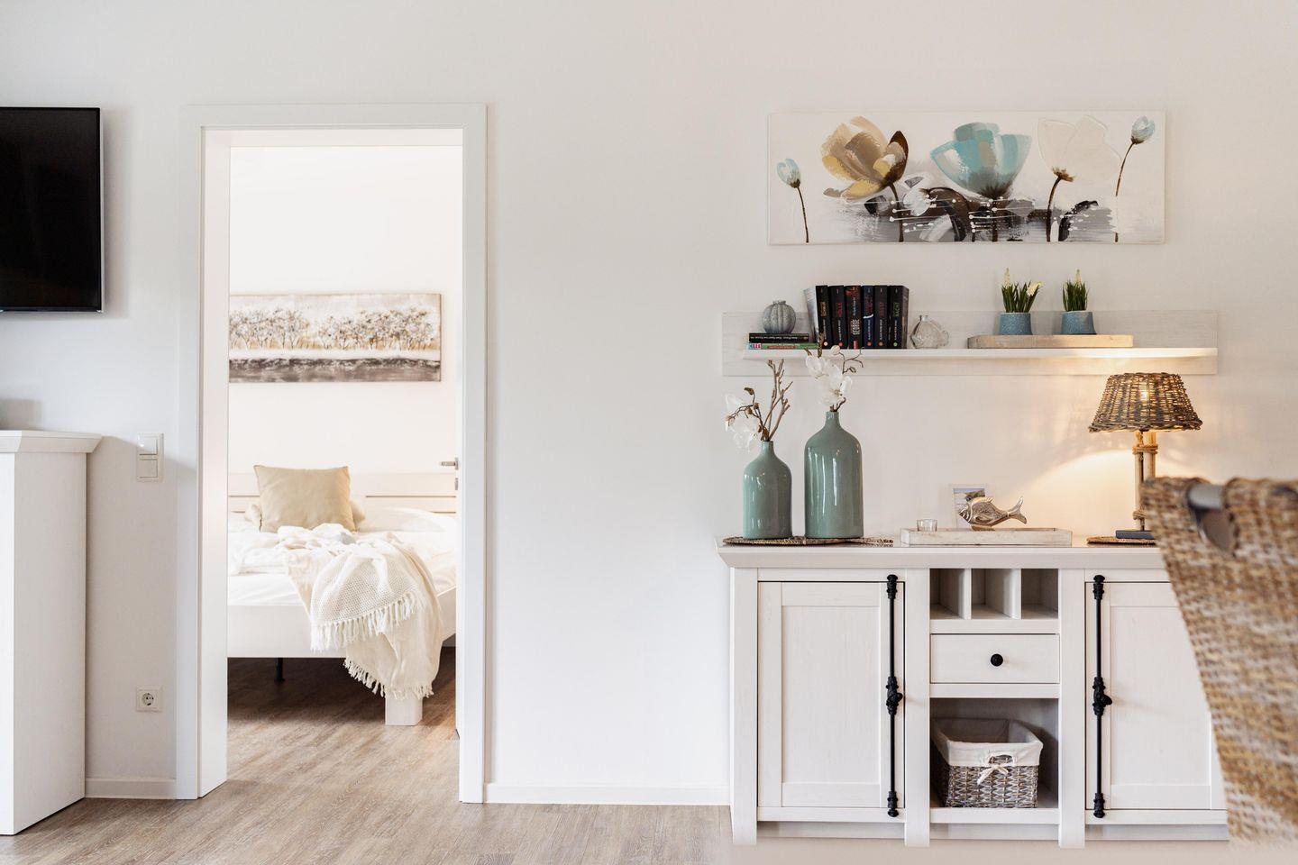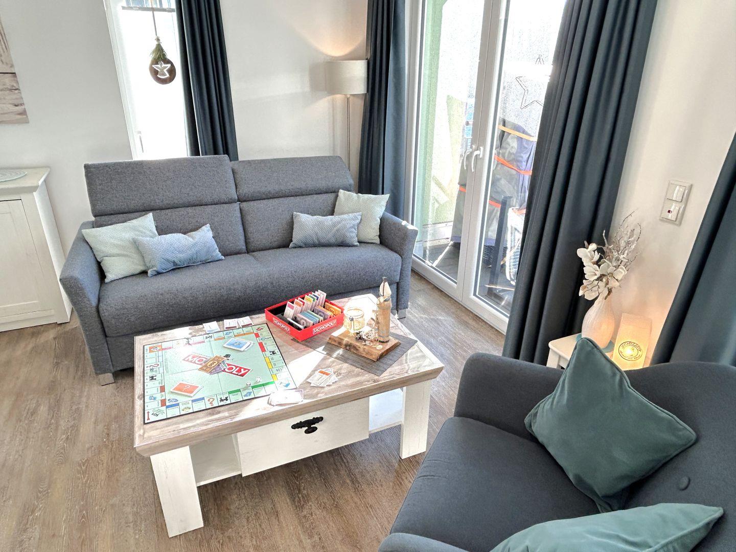 Betretet die großzügige Ferienwohnung und spürt sofort die wohltuende Atmosphäre. Helle Räume und liebevoll gestaltete Details laden zum Verweilen ein. Der Wohnbereich bietet Euch ein neues bequemes Sofa und zwei Sessel, perfekt, um bei einem guten Buch oder einem spannenden Film zu entspannen. Das umfangreiche Entertainmentpaket sorgt für kurzweilige Abende. Unsere Ferienwohnung an der Nordsee ist auch ein wahres Familienparadies. Die liebevoll eingerichteten Räume sind darauf ausgelegt, Euch eine unbeschwerte und glückliche Zeit zu bescheren. Gesellschaftsspiele sorgen für Unterhaltung und Spielspaß für die ganze Familie.