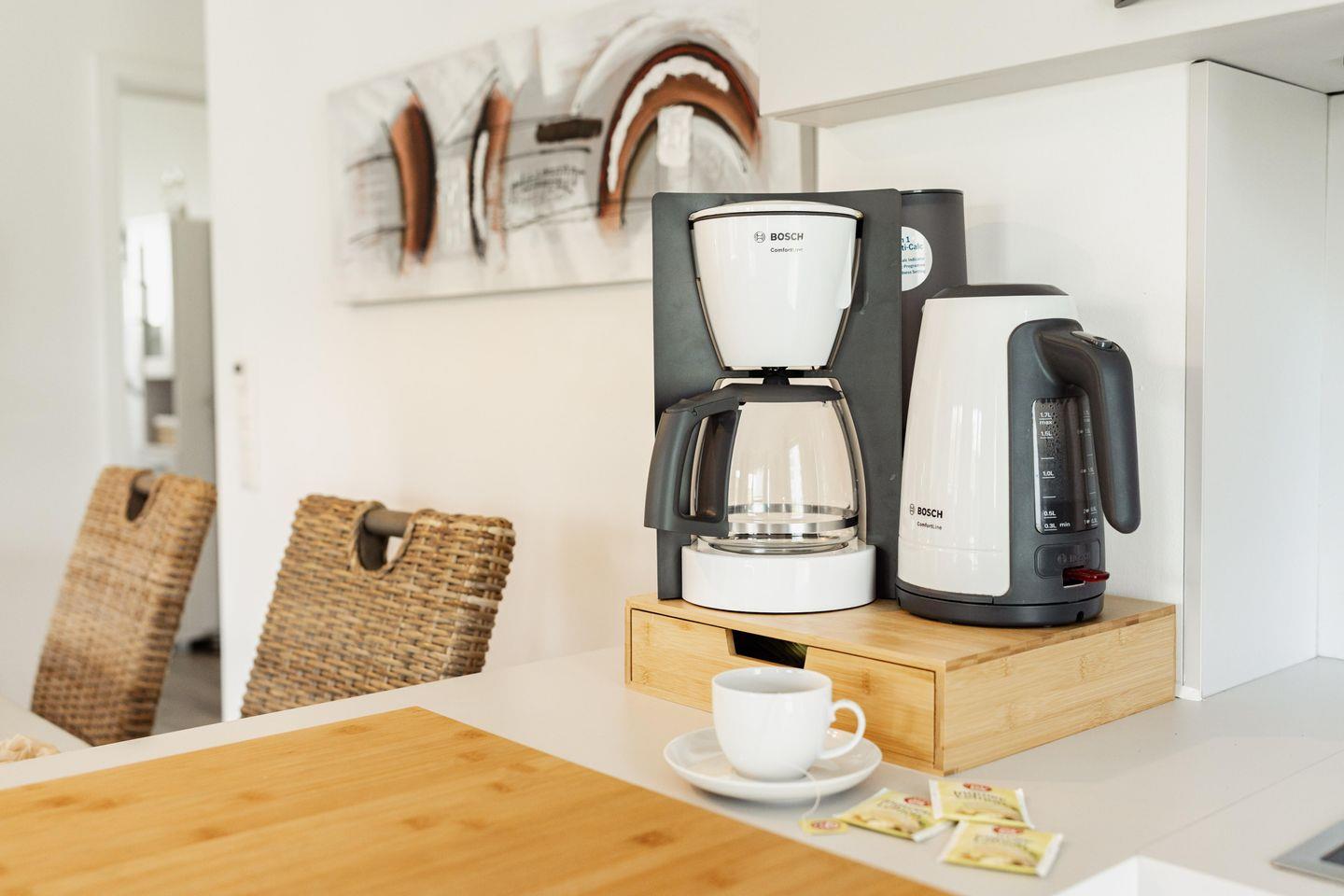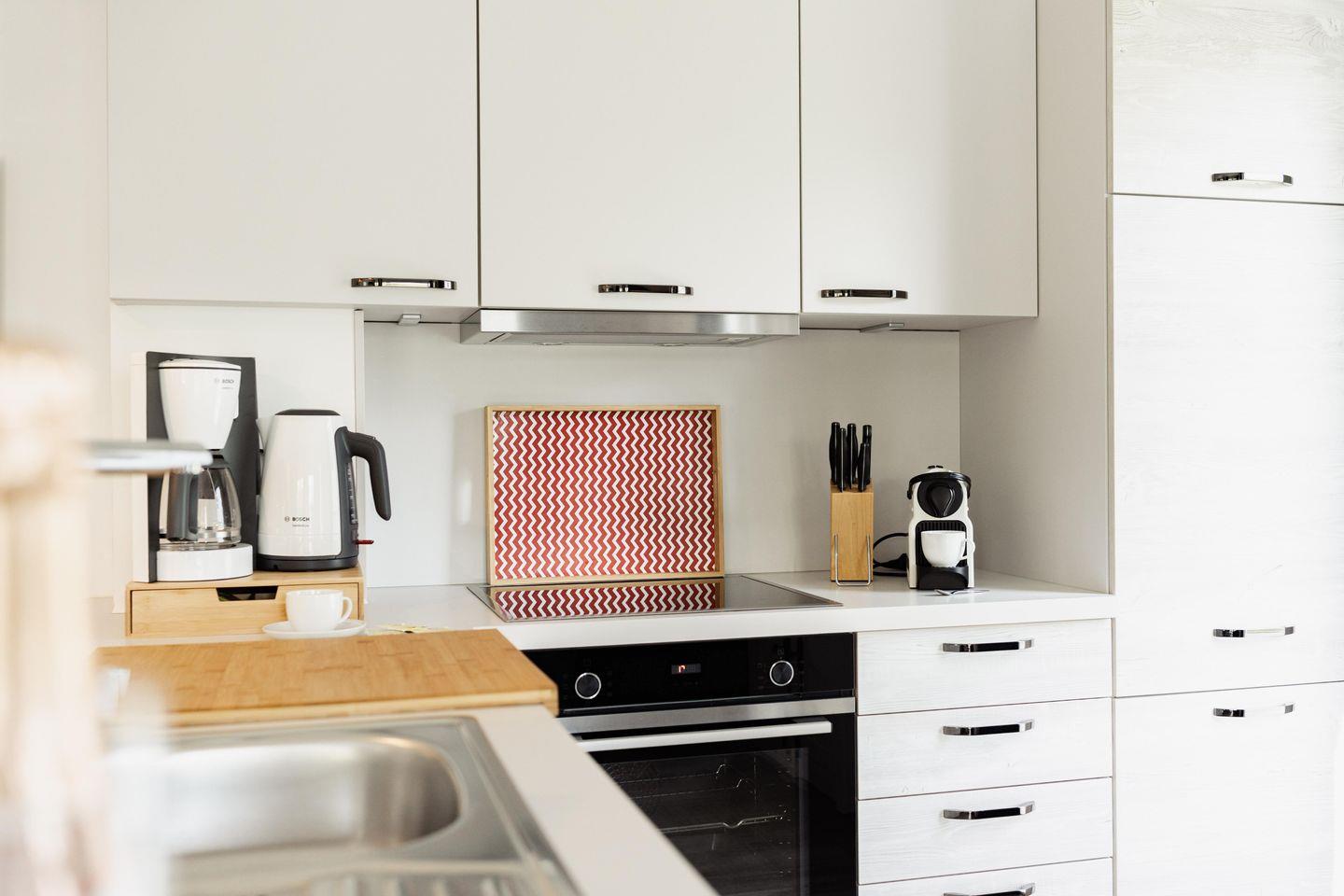Die voll ausgestattete Küche lässt keine Wünsche offen. Vom Toaster bis zur Nespressomaschine ist alles vorhanden. Der großzügige Essbereich mit Blick auf das Wasser der Graft lädt zu gemütlichen Mahlzeiten ein. Stellt Euch vor, wie Ihr den Tag mit einem ausgiebigen Frühstück beginnen werdet, während die ersten Sonnenstrahlen über das Wasser tanzen. Die Küche verfügt zudem über einen Herd mit Backofen und einen Kühlschrank mit Gefrierfach, sodass Ihr problemlos alle Eure Lieblingsgerichte zubereiten könnt.