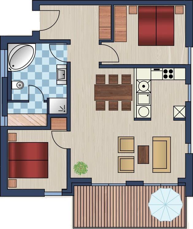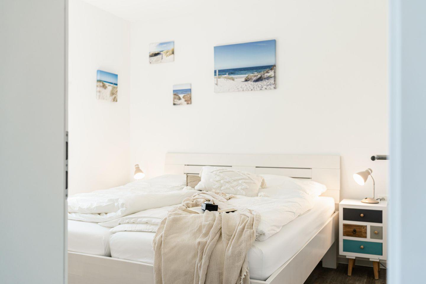 Unsere Ferienwohnung verfügt über zwei gemütliche Schlafzimmer mit großen Betten und großzügigen Kleiderschränken. Hier findet Ihr Platz, um Euch zurückzuziehen und neue Kraft zu tanken.