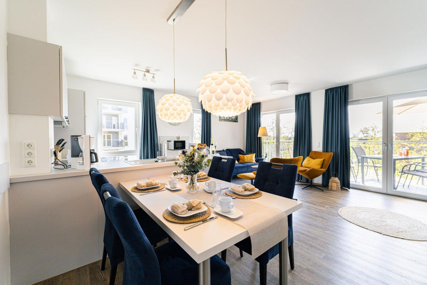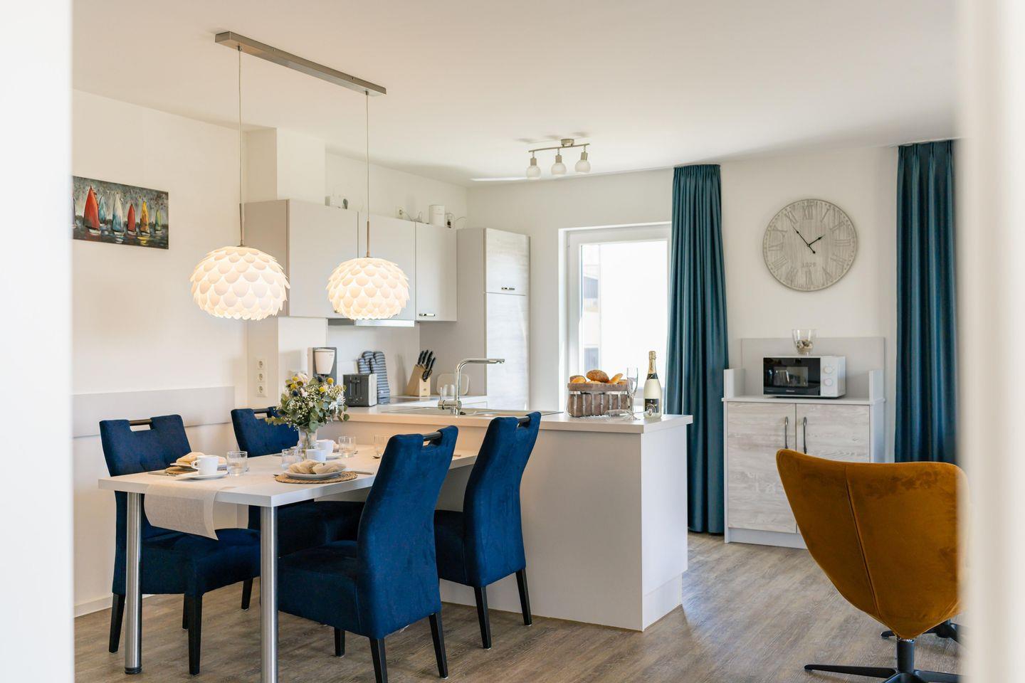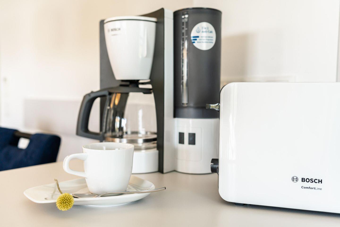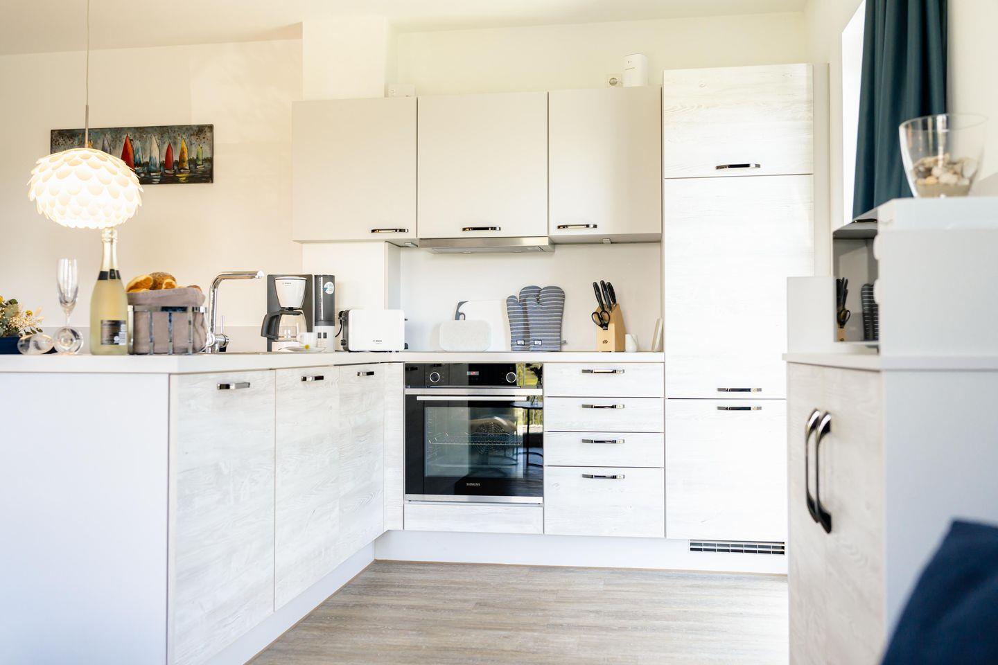 In den hellen und geräumigen Wohnzimmern mit gemütlichen Sofas und Sesseln findet Ihr den idealen Ort zum Entspannen. Hier könnt Ihr gemeinsam Filme schauen, spielen oder einfach nur die Zeit genießen. Die voll ausgestattete Küche bietet alles, was das Herz begehrt – von Herd, Backofen, Mikrowelle, Geschirrspülmaschine bis hin zu Küchenutensilien wie Toaster und Nespresso-Maschine. Hier wird gemeinsames Kochen zu einem Vergnügen.