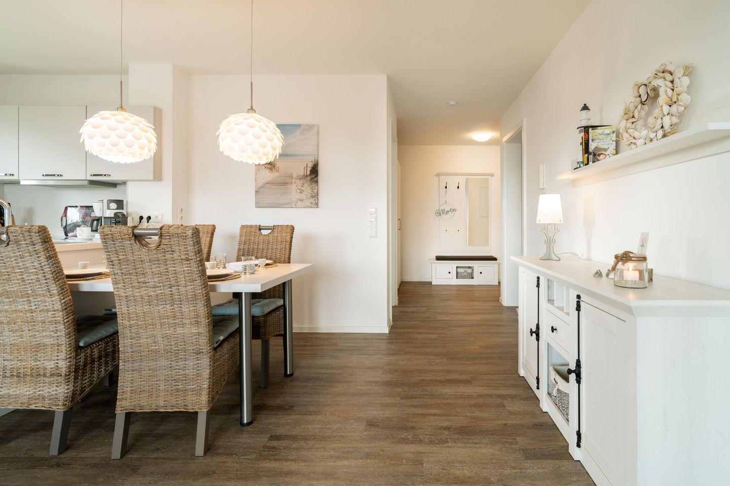 Nach einem langen Tag am Strand oder einer ausgedehnten Radtour könnt Ihr in der privaten Sauna der Wohnung entspannen. Wärmen Euch auf und lasst die Seele baumeln. Der gemütliche Essbereich bietet Platz für gemeinsame Mahlzeiten, Gespräche und gesellige Abende.