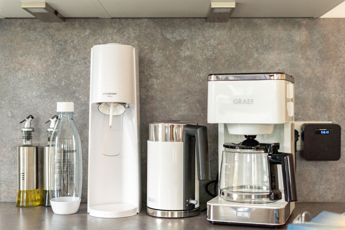 Die Küche in "Graftkieker" ist bestens ausgestattet. Freut Euch auf einen modernen Opti-Grill, einen Soda-Stream und alle nötigen Küchenutensilien, von der Suppenkelle bis zur Senseo-Espressomaschine. Hier könnt Ihr gemeinsam kochen und genießen. Der großzügige Essbereich lädt zu langen, gemütlichen Mahlzeiten ein. Erlebt unvergessliche, gemeinsame Momente!