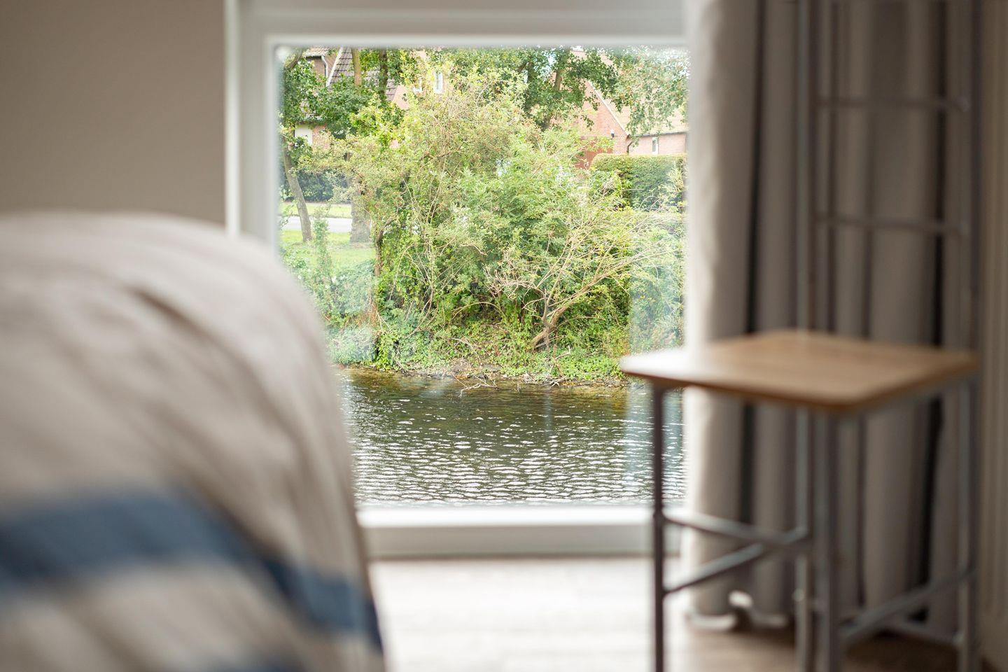 Genießt traumhafte Sonnenuntergänge und den Blick auf das Wasser der Graft vom Balkon unserer Ferienwohnung. Der Balkon ist mit bequemen Stühlen und einem Tisch ausgestattet – perfekt für ein gemütliches Frühstück oder ein Glas Wein am Abend.