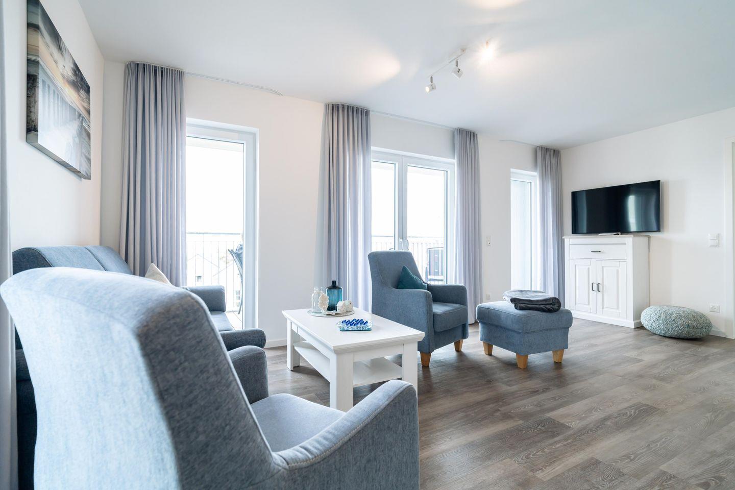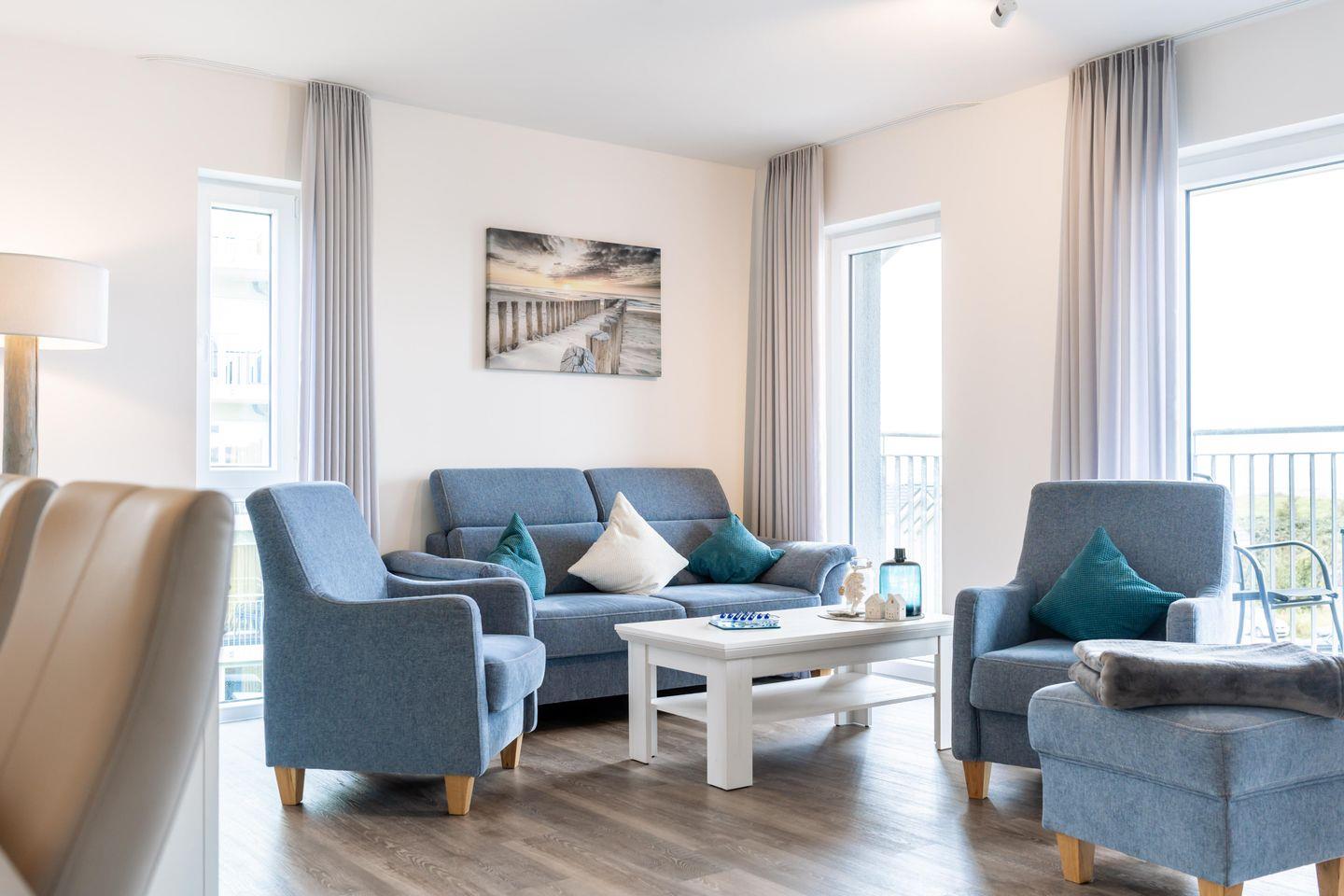 Herzlich willkommen in unserer Ferienwohnung „Seaside“! Hier, im dritten Stock, genießt einen unvergleichlichen Blick auf das Meer und die weitläufige Küstenlandschaft von Schillig.
