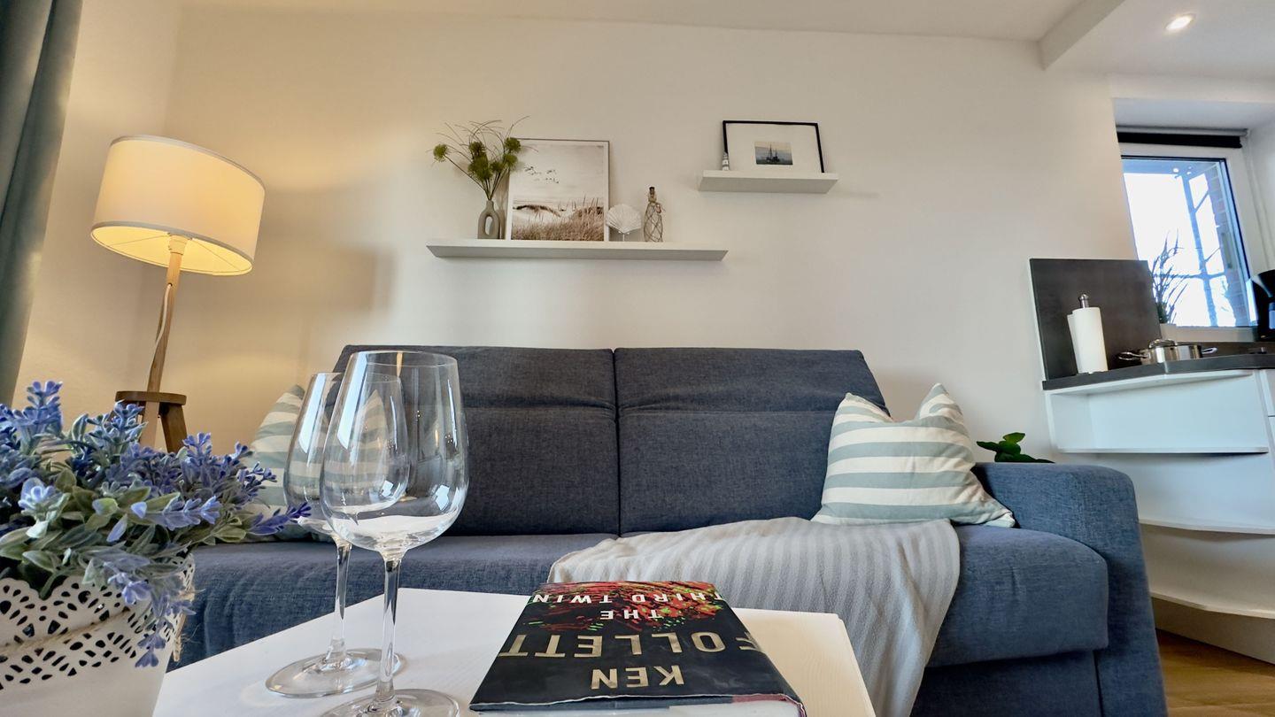 Auf dem hochwertigen Schlafsofa können Sie entspannte Abende verbringen, und zusätzlich bietet es zwei Schlafplätze für weitere Gäste.
