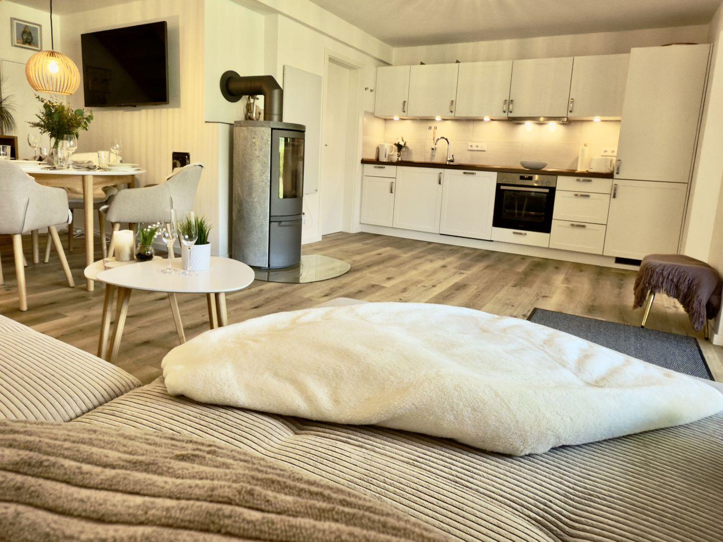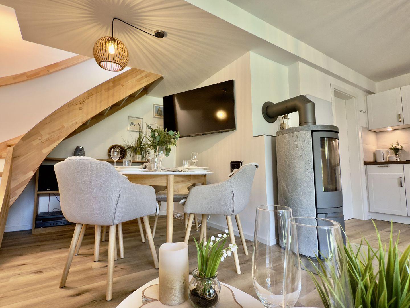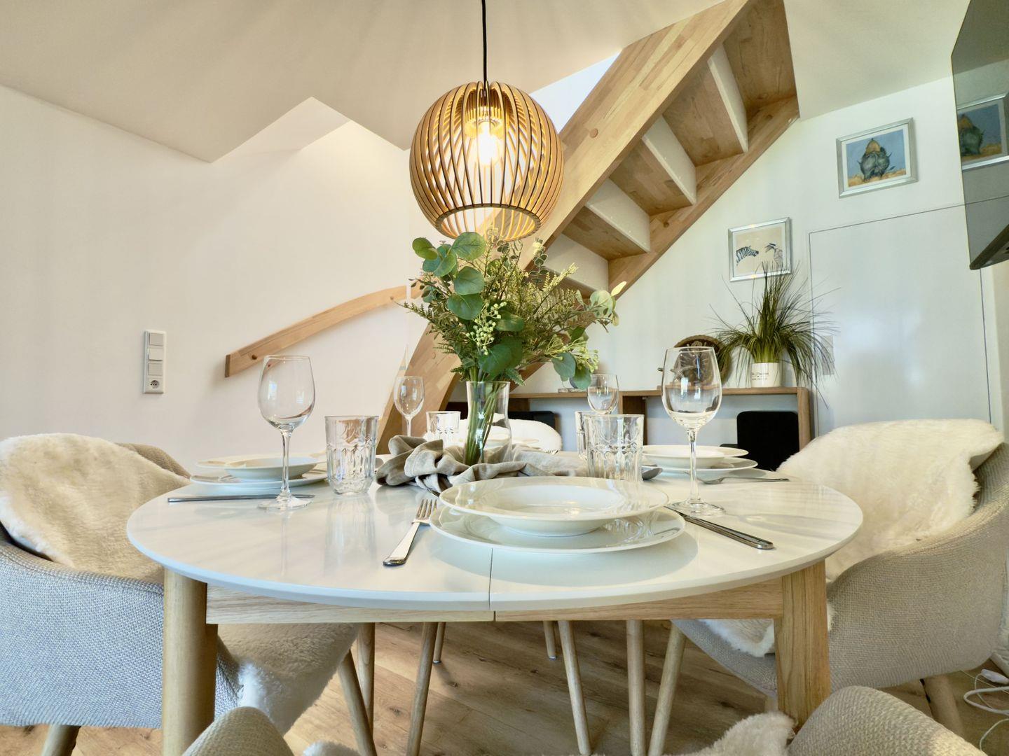 Die offene, moderne Küche ist vollständig ausgestattet und bietet alles, was Sie für Ihre kulinarische Auszeit brauchen. An der einladenden Essgruppe genießen Sie gemeinsame Mahlzeiten in behaglicher Atmosphäre.