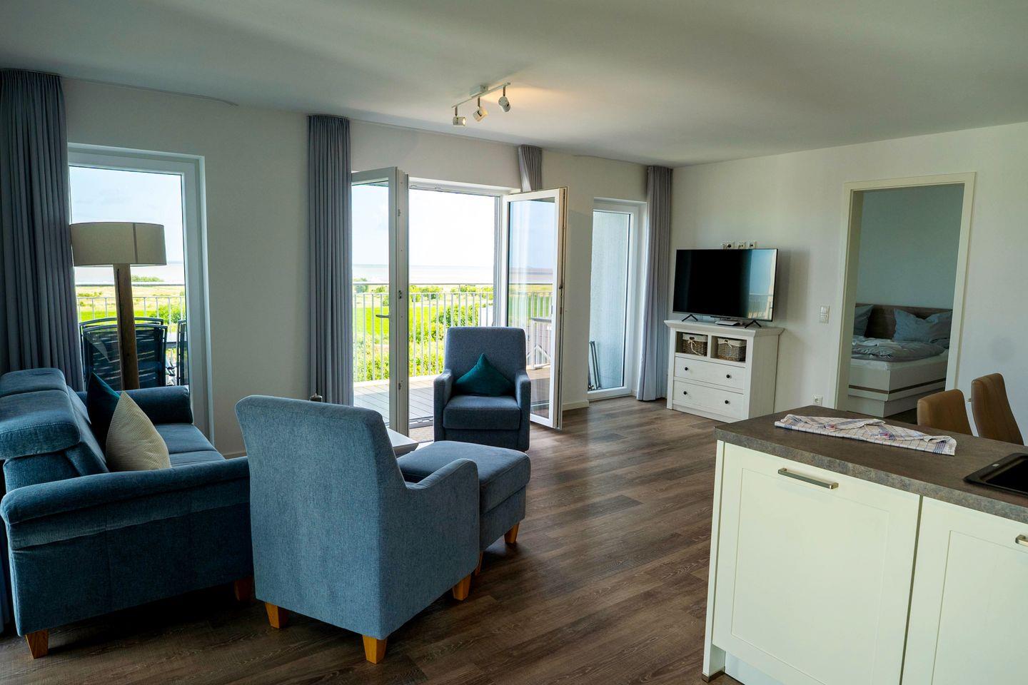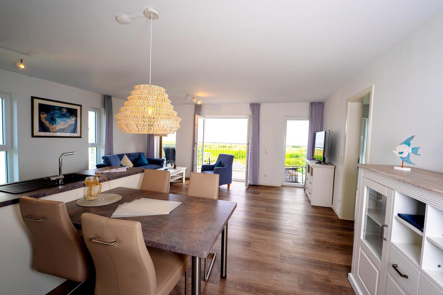 Herzlich willkommen in unserer Ferienwohnung „Meerkieker“! Im fünften Stock gelegen, bietet Euch diese Wohnung einen atemberaubenden Blick über das Meer, das Wattenmeer und die weite Küstenlandschaft rund um Schillig – so weit das Auge reicht.