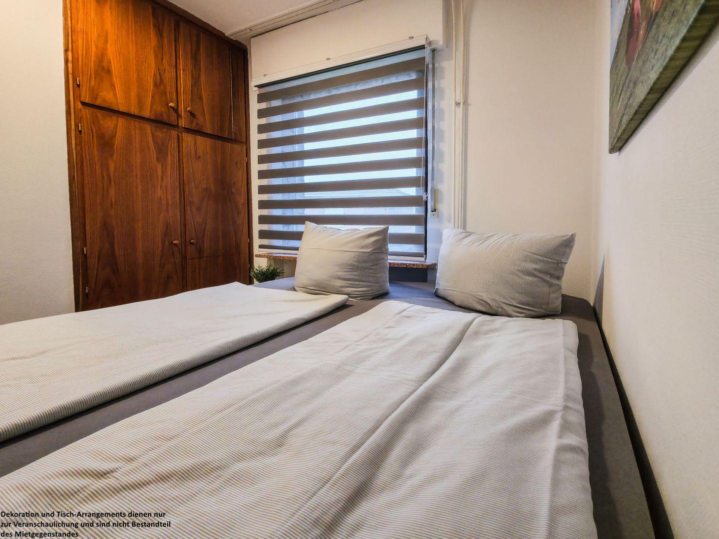 Im zweiten Schlafzimmer erwartet Sie ein weiteres Boxspringbett – auch hier stehen Ihnen praktische Einbauschränke zur Verfügung.