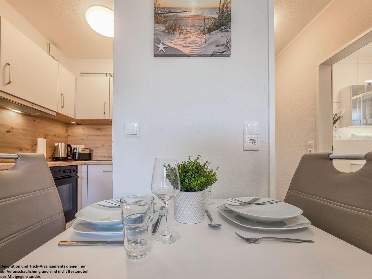 Die Ferienwohnung „Dünenperle“ (30 qm) für drei Personen liegt ruhig im Grünen, im Herzen von Horumersiel.