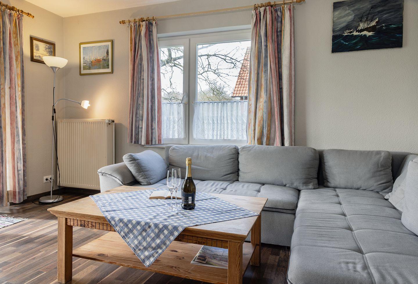 Sowohl das Haus als auch der Ort sind geschichtsträchtig: Die urgemütliche Doppelhaushälfte ist ein ehemaliges Landarbeiterhaus und steht in einer bedeutungsvollen Gegend. Denn die Goldene Linie entstand im 17. Jahrhundert als Grenze zwischen dem Fürstentum Ostfriesland und der Grafschaft Oldenburg in der Harlebucht. Bis zum heutigen Tage bildet sie auf dem Festland die Trennlinie der beiden Landkreise Wittmund und Friesland.