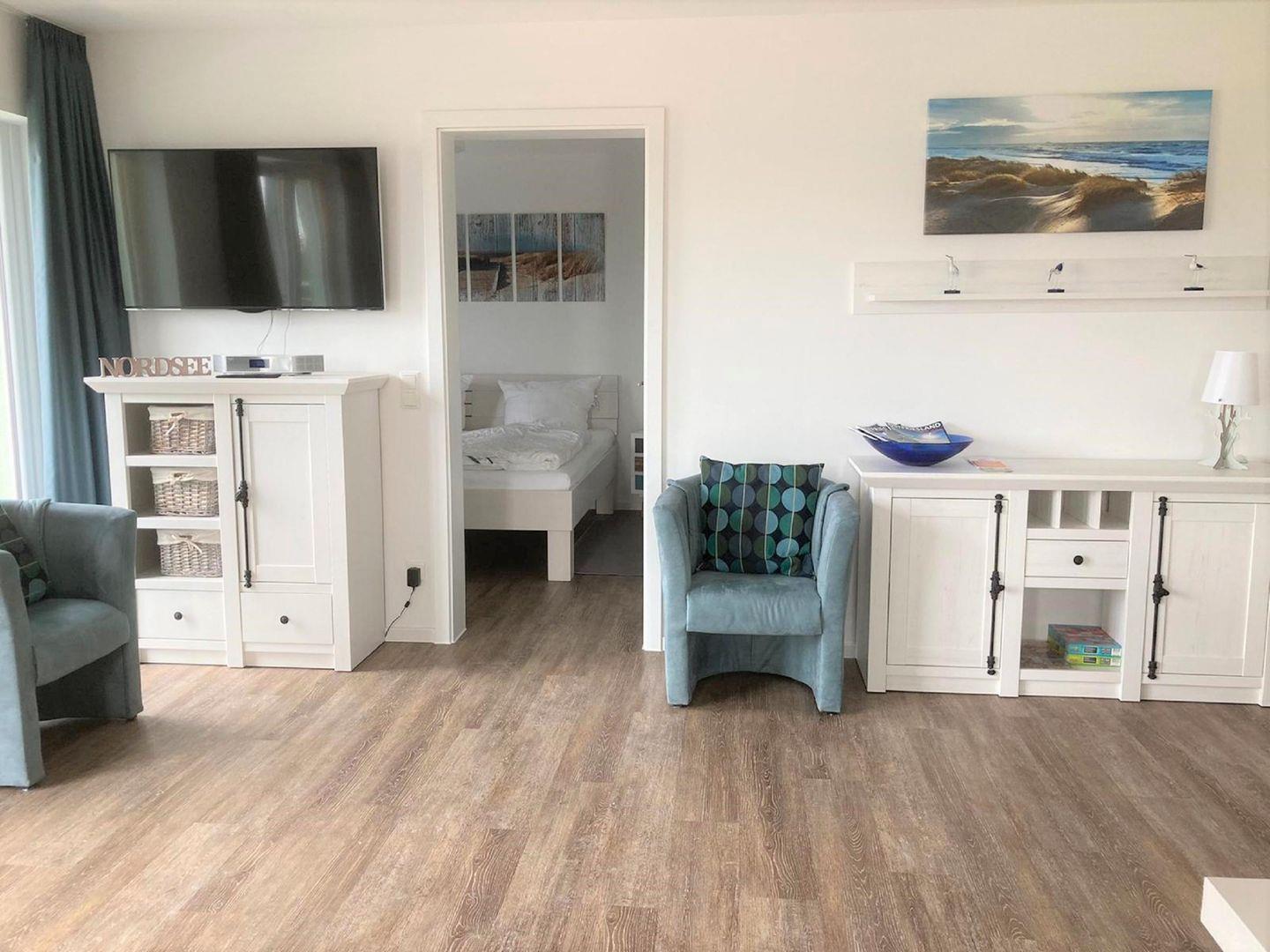 Zwei Schlafräume und der großzügige Wohnbereich mit offener Küche heißen Sie herzlich Willkommen