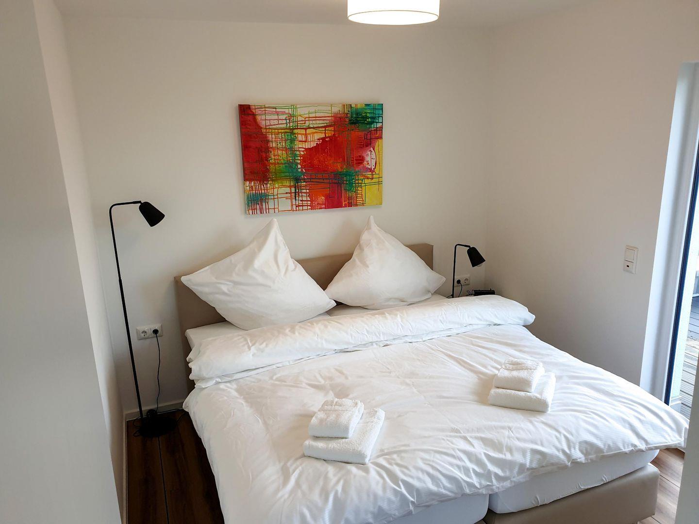 Die Ausstattung der Schlafzimmer mit Boxspringbetten lassen Hotelcharakter zu.
