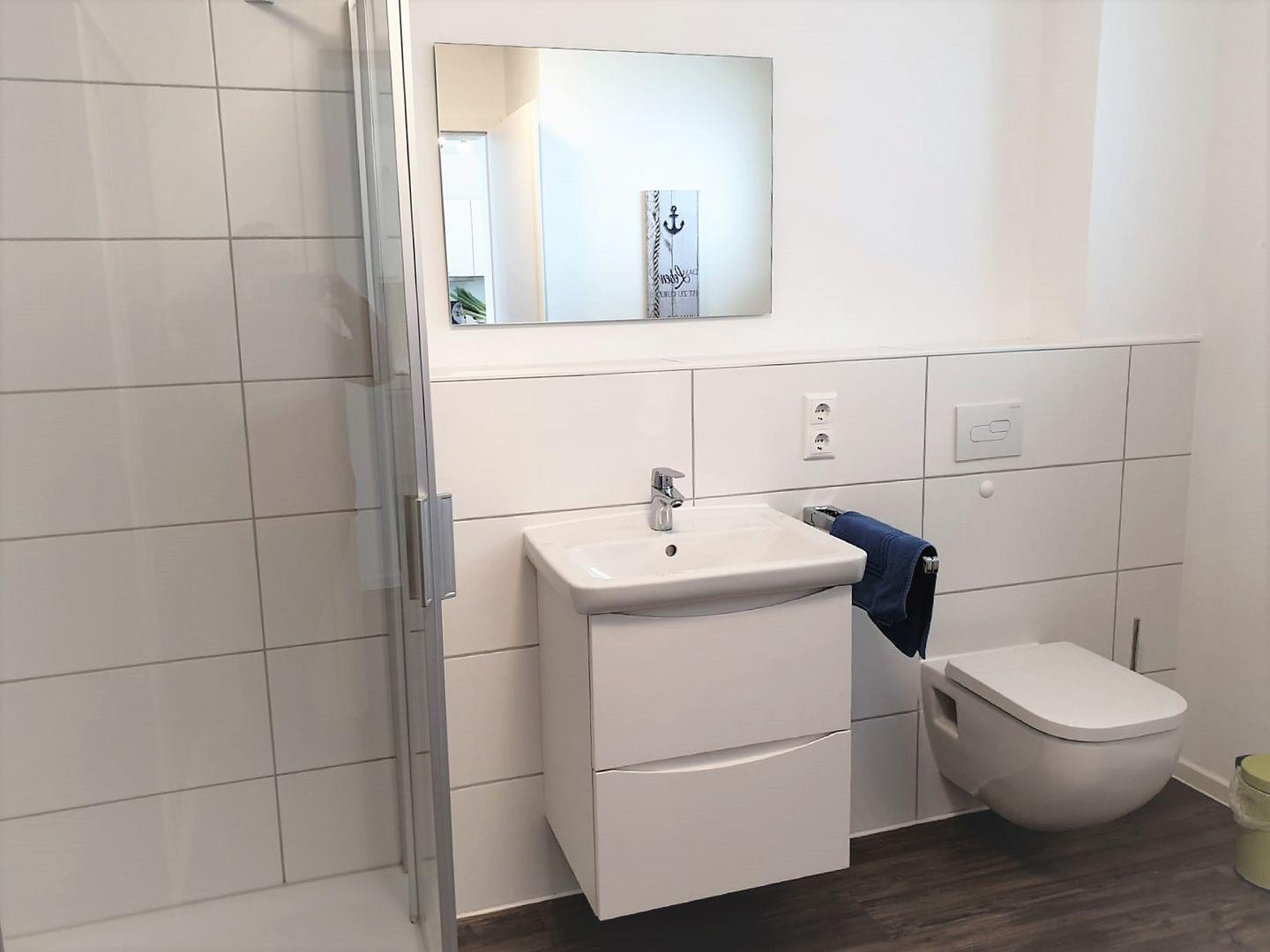 Das Badezimmer ist sehr großzügig geschnitten und mit einer Regendusche und einer Infrarotkabine ausgestattet.