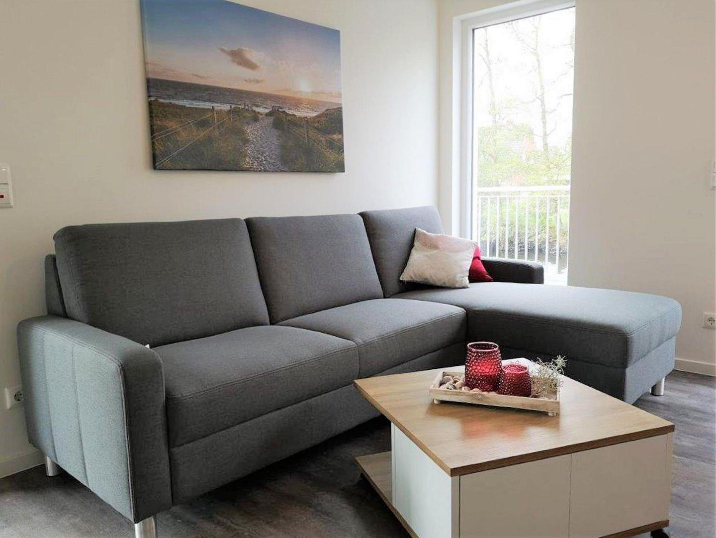 Im hinteren Bereich, zur Terrasse gelegen, steht eine gemütliche Sofaecke mit Fernseher zur Verfügung.