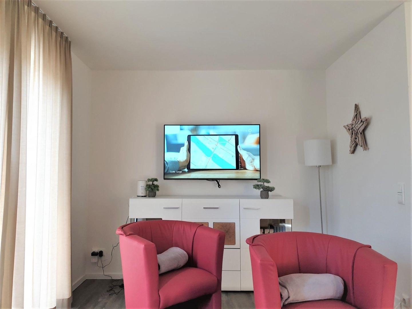 Auch hier bietet eine gemütliche Sofaecke mit Fernseher und eine Relax Liege die Möglichkeit zum Entspannen.