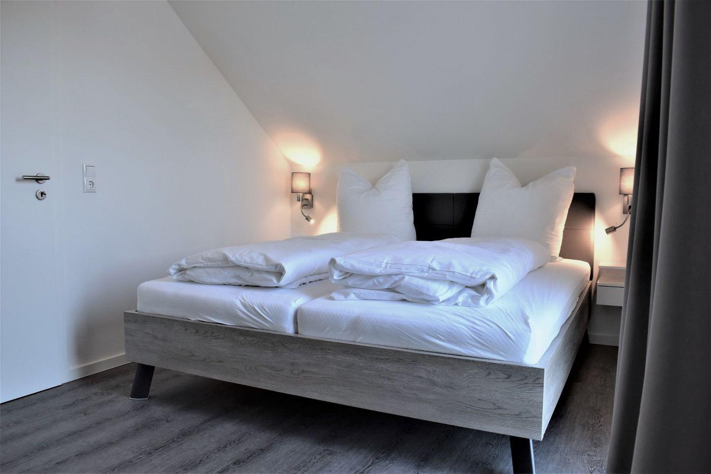 Die erste Etage bietet Ihnen neben zwei Schlafräumen, das große Bad mit Dusche, Badewanne und einer hauseigenen Sauna.