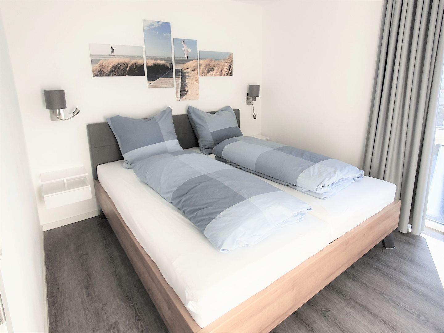 Die erste Etage bietet Ihnen neben zwei Schlafräumen, das große Bad mit ebenerdiger Dusche, Badewanne und Sauna.