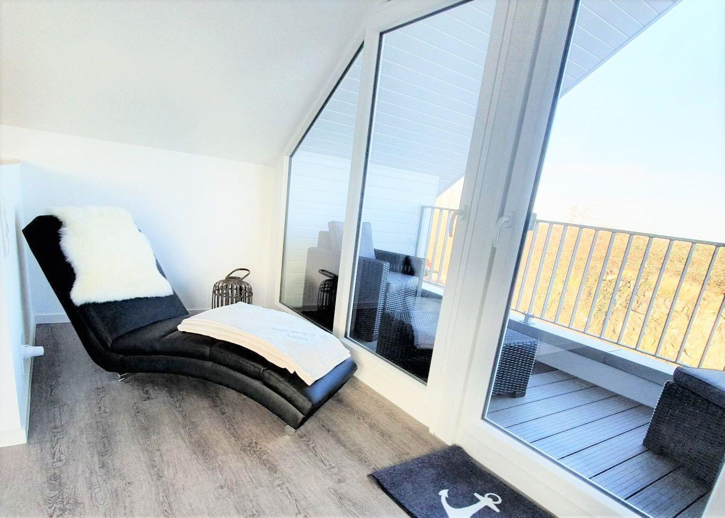 Auch hier bietet eine gemütliche Sofaecke mit Fernseher und eine Relax Liege die Möglichkeit zum Entspannen.